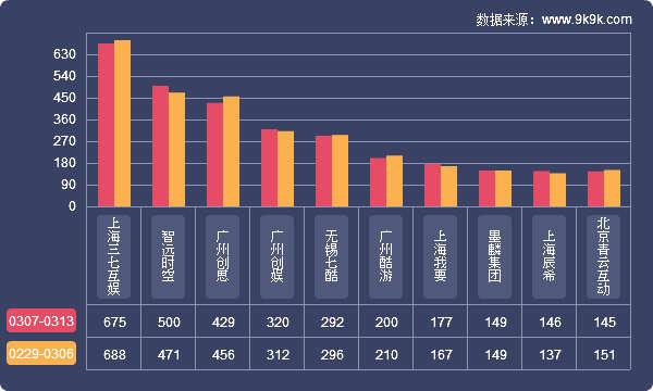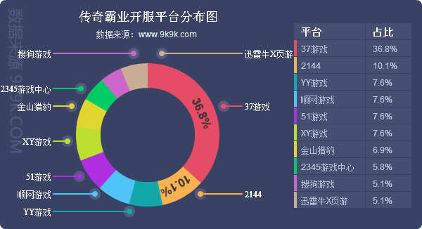 点评:本周《传奇盛世》的开服分布占比变化不大,2144上调其开服频率为4服/天。新增分布占比平台2133、PPTV。
