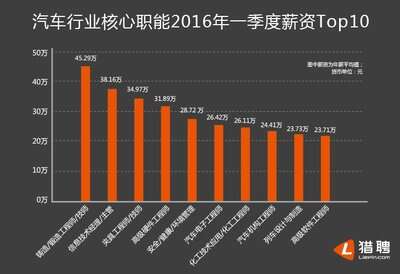 在本季度汽车行业核心职能薪资排名Top10的职位中,大多数职位跟机械制造类工种密切相关。值得注意的是,信息技术经理/主管和高级软件工程师分别名列第二和第十,这意味着互联网典型技术岗位已跻身汽车的核心职能序列。此外,安全/健康/环境管理类职能排名第五,这表明在汽车行业,安全因素和环保友好型功能越来越得到重视,这一方面迎合了近年来国家大力提倡环保节能的政策,另一方面则迎合了新能源汽车崛起的时代潮流。