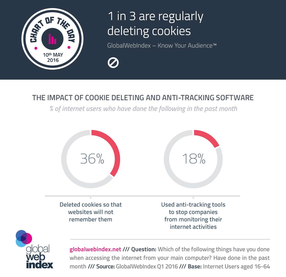 全球来看,36%的网民每个月删除cookies,18%表示正在使用反追踪软件以阻止企业监控网络活动。在北美这个指数甚至更高,4/10的北美网民会删除cookies, 超过1/5的网民使用反追踪软件。