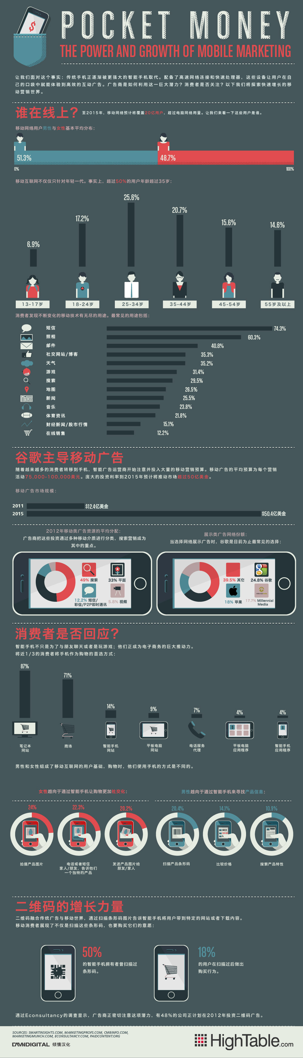 传统手机正逐渐被更强大的智能手机取代。配备了高速网络连接和快速处理器,这些设备让用户在自己的口袋中就能体验到高效的互动广告。广告商是如何利用这一巨大潜力?消费者又是否关注?HighTable这则信息图将探索快速增长的移动营销世界。