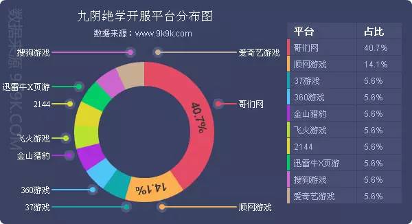 点评:本周《九阴绝学》开服略有下降,爱奇艺游戏日均开服频率调整为2服/天。未有新增分布占比平台。