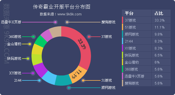 点评:本月《传奇霸业》开服总数较上月略有减少,在各平台的开服占比都较为稳定,与上月相比未发生太大变化。