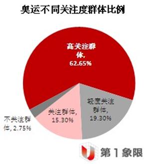 奥运会,四年一度的全球盛宴。手机人作为盛宴的参与者之一,对奥运表现出了高度的热情,在手机人群体中,高度关注奥运的群体所占比例超过了60%,且随着手机上网频率的增高,对奥运的关注度逐步提升。