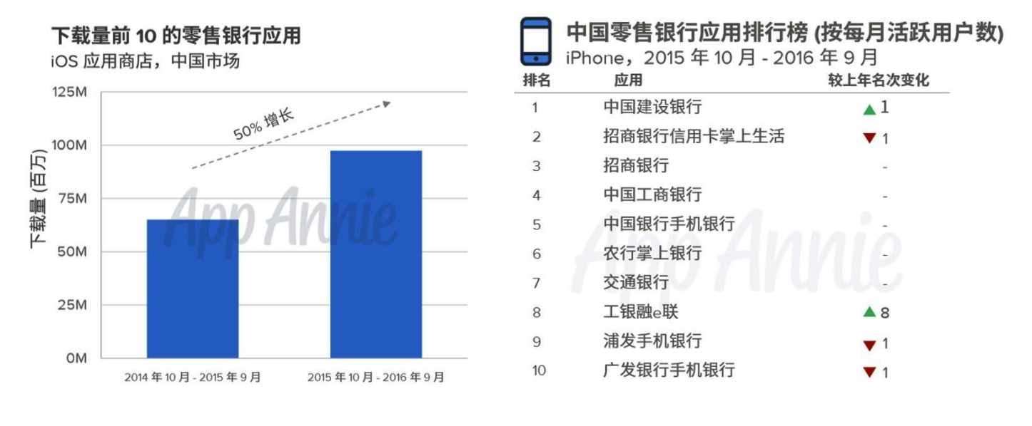 去的两年里,中国 iOS 财务类应用的下载量增长了 265%,前十大零售银行应用在中国 iOS 市场的下载量正在逼近一亿大关。