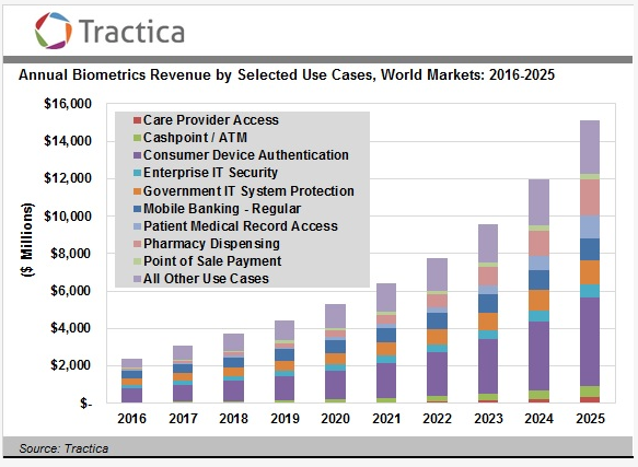 Tractica:2025年全球生物识别市场收入将达到151亿美元 199IT原创编译 到2025年全球生物识别市场收入将达到151亿美元。 企业希望给用户提供更好的验证和识别体验,以及用户对密码和提示问题等知识型验证的厌恶,生物识别市场逐渐成为一个新的热点。生物识别正快速在消费者、工业和政府系统中普及开来。 根据Tractica的数据,2025年生物识别硬件和软件收入将从2016年的24亿美元增长至151亿美元,复合年增长率22.9%。 199IT.com原创编译自:Tractica 非授权请勿转载 更多阅读:Tractica:2025年全球虹膜识别市场将增长至41亿美元Tractica:预计2022年移动AR月活跃用户数量达到19亿埃森哲:73%的公共服务部门利用新兴科技提高数据安全和隐私保护能力Acuity:2022年全球移动生物识别市场将达到506亿美元Tractica:2016年全球消费机器人销售额达38亿美元Tractica:2017年全球智能耳机销量560万部Tractica:2016年全球智能服装出货量在170万件左右Tractica:预计2022年全球联网可穿戴贴片市场达到79亿美元Worldpay:2/3的消费者希望使用生物识别进行店内付款Tractica:2022年全球智能AR眼镜市场规模将达到197亿美元IAS:2021年广告上下文的生物识别研究报告Tractica:2021年全球仓储和物流机器人市场将达到224亿美元Tractica:2021年全球企业VR市场规模将达到92亿美元Tractica:预计2021年移动VR市场规模将达到109亿美元Tractica:预计2025年全球人工智能收入将增长至598亿美元
