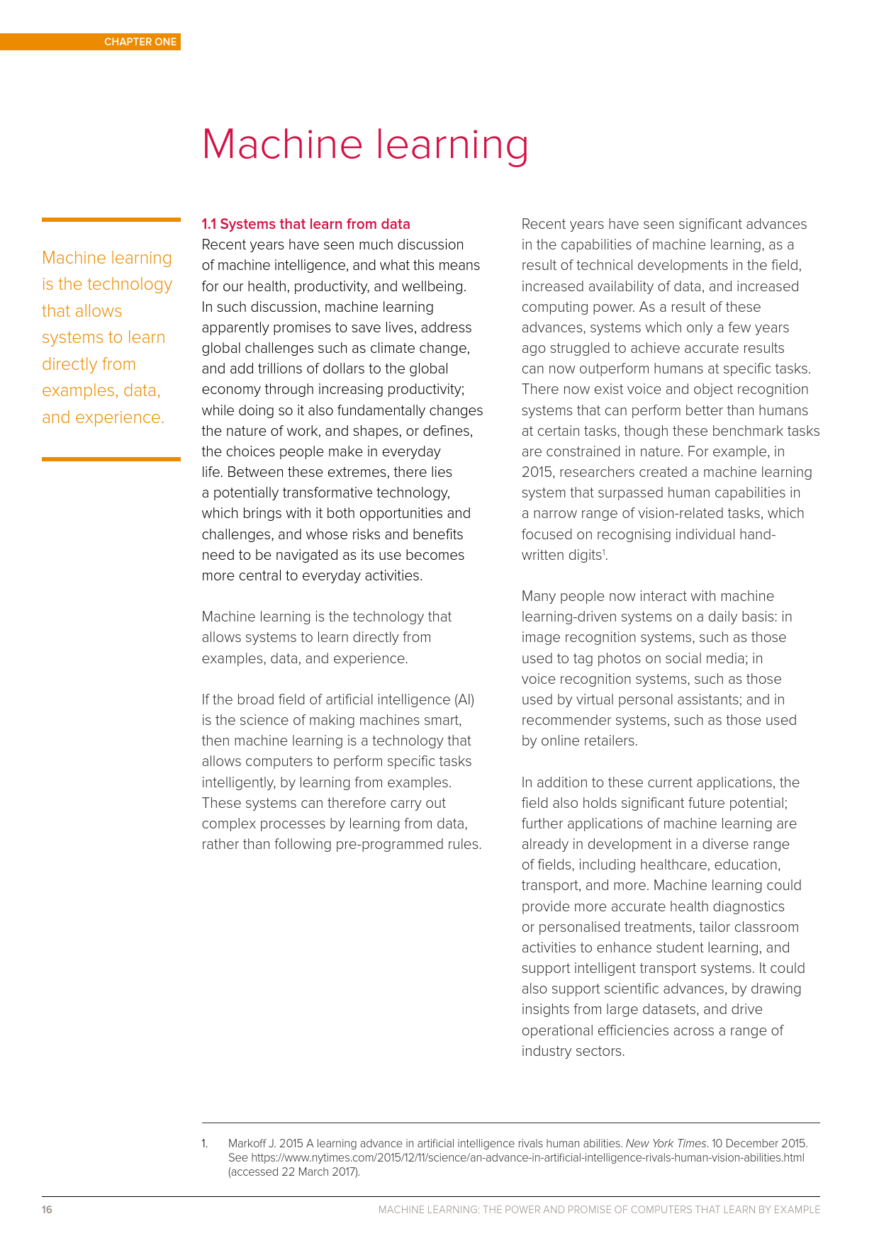 近日,英国皇家学会(Royal Society)发布了一份题为《机器学习:能通过样本进行学习的计算机的力量与希望(Machine learning: the power and promise of computers that learn by example)》的专题报告,对机器学习进行了较为全面的概述,其中涉及到机器学习的基本概念、发展历程、应用、创造价值的方式和研究前沿等。