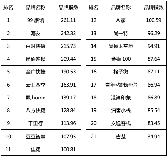 (一)平价酒店品牌风云榜TOP10