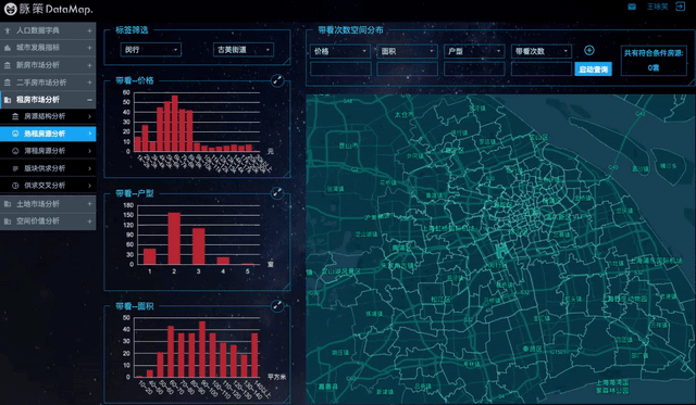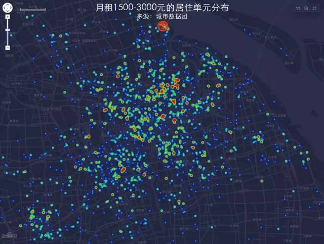 通过市场上挂牌出来的房源数据可以看到:不同租金价格的住宅在空间上组成了一个个放射型的同心圆。每个月少付1000块,你可能就要住的离市中心更远一点。