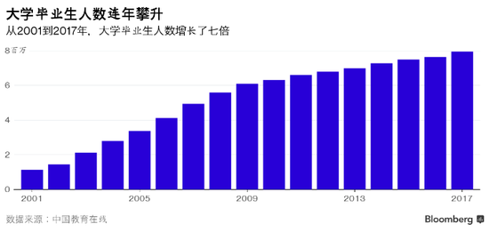 据智联招聘数据,大学应届毕业生月薪在今年下降16%至4,014元人民币(590美元),已经是连续第二年下滑。教育部估计,今年将有795万大学生毕业,几乎与瑞士的人口数量一样多。