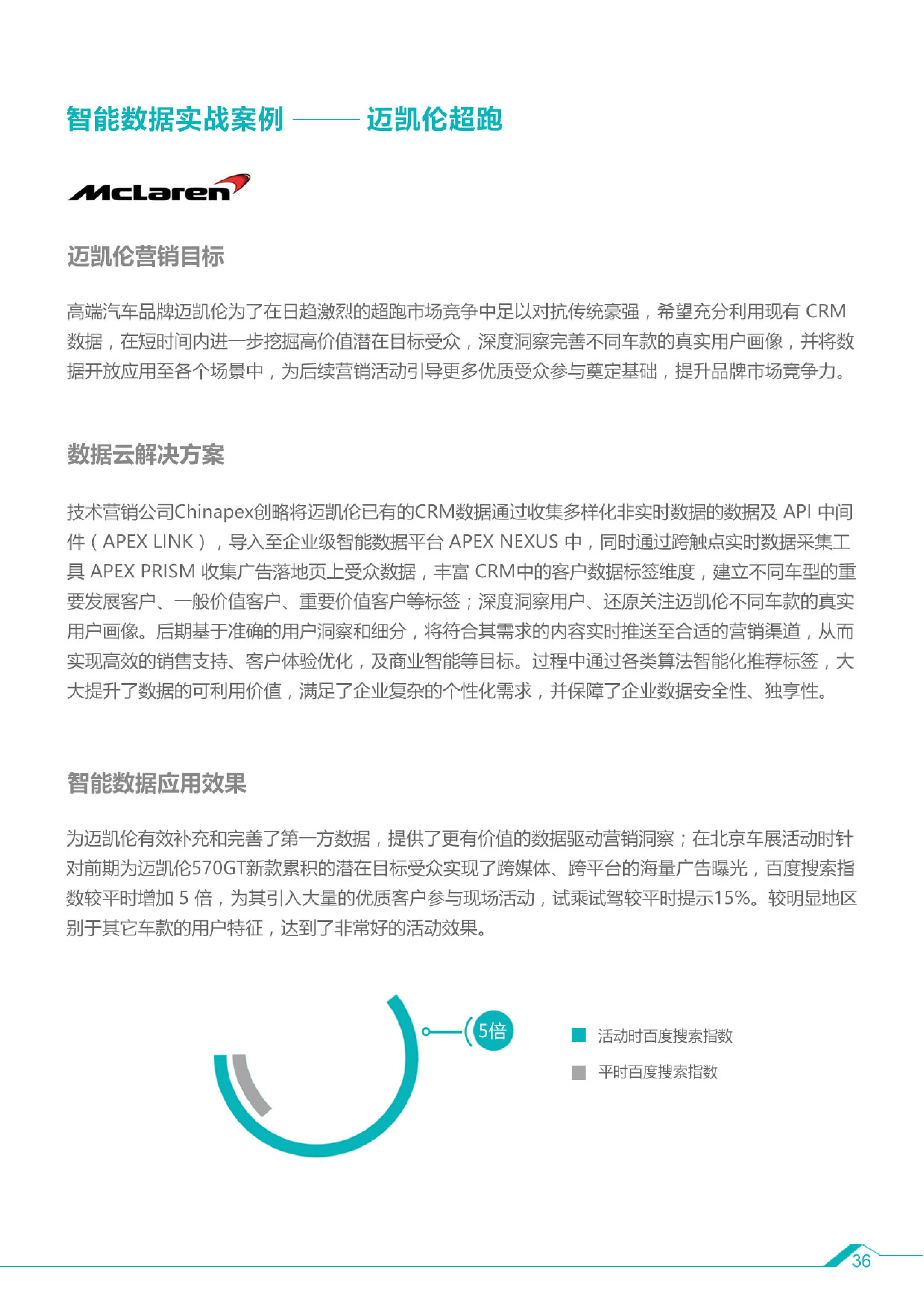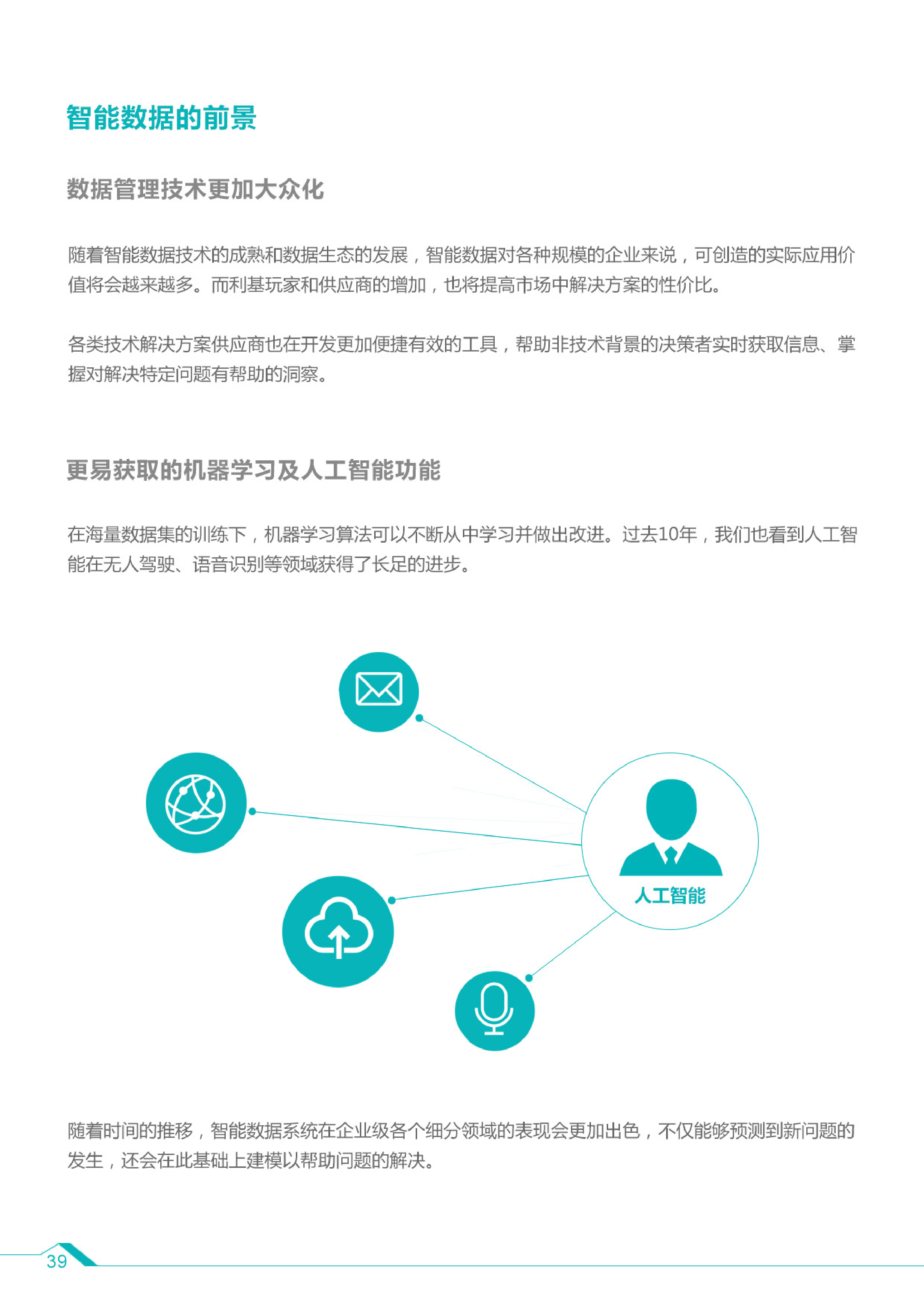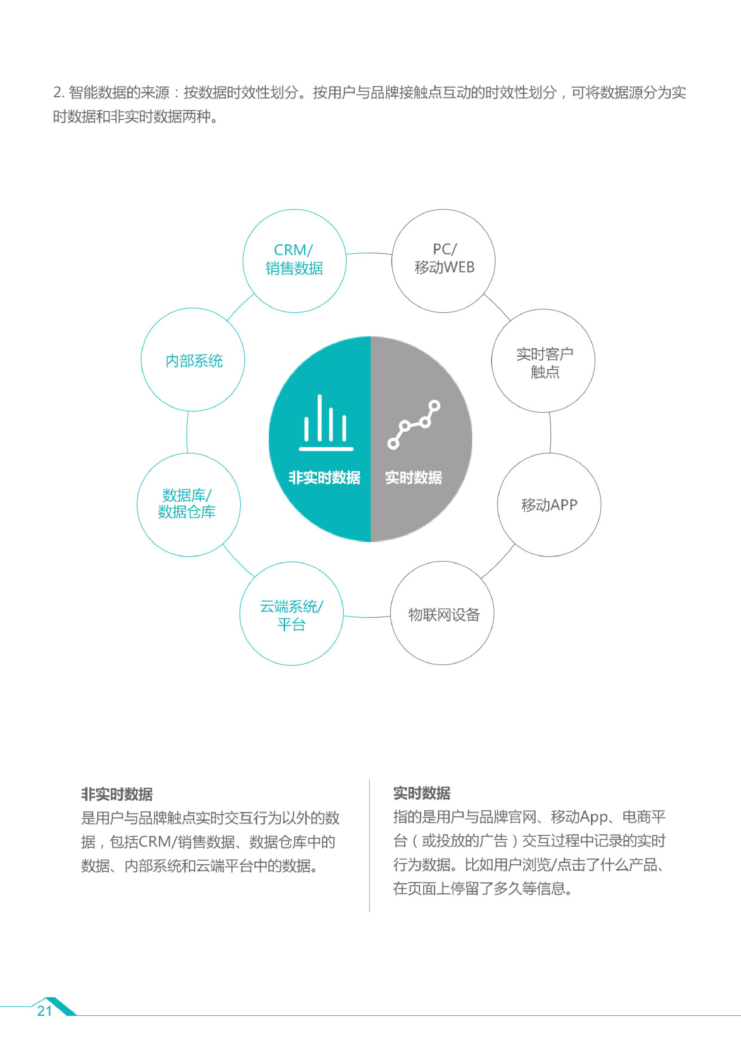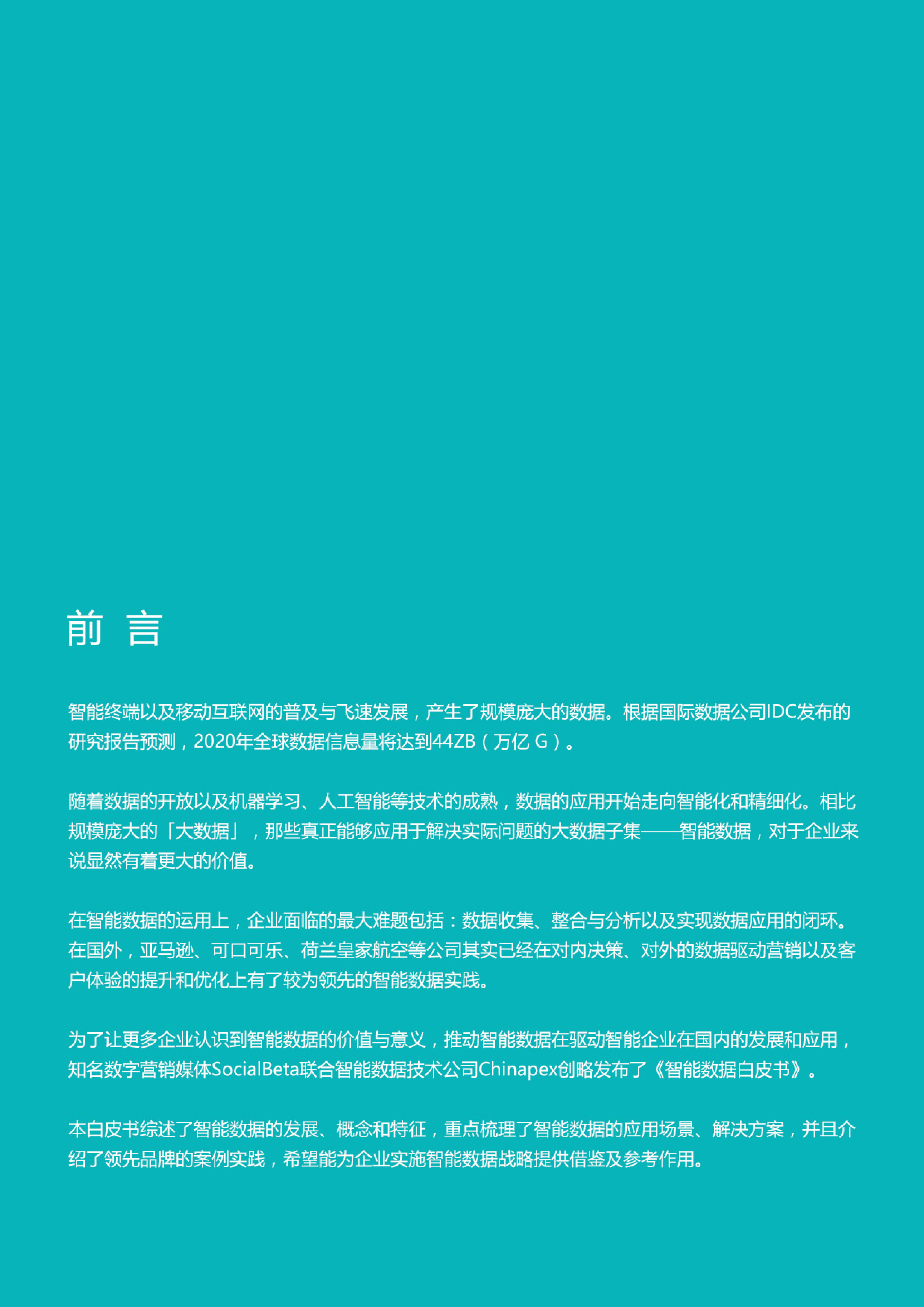 为了让更多企业认识到智能数据的价值与意义,推动智能数据驱动智能企业在国内的发展和应用,《智能数据如何高效驱动营销——智能数据白皮书》综述了智能数据的发展、概念和特征,重点梳理了智能数据的应用场景、解决方案,同时也对智能数据的的商业应用——客户数据平台(customer data platform)解决方案的最佳实践案例进行了详细的介绍。