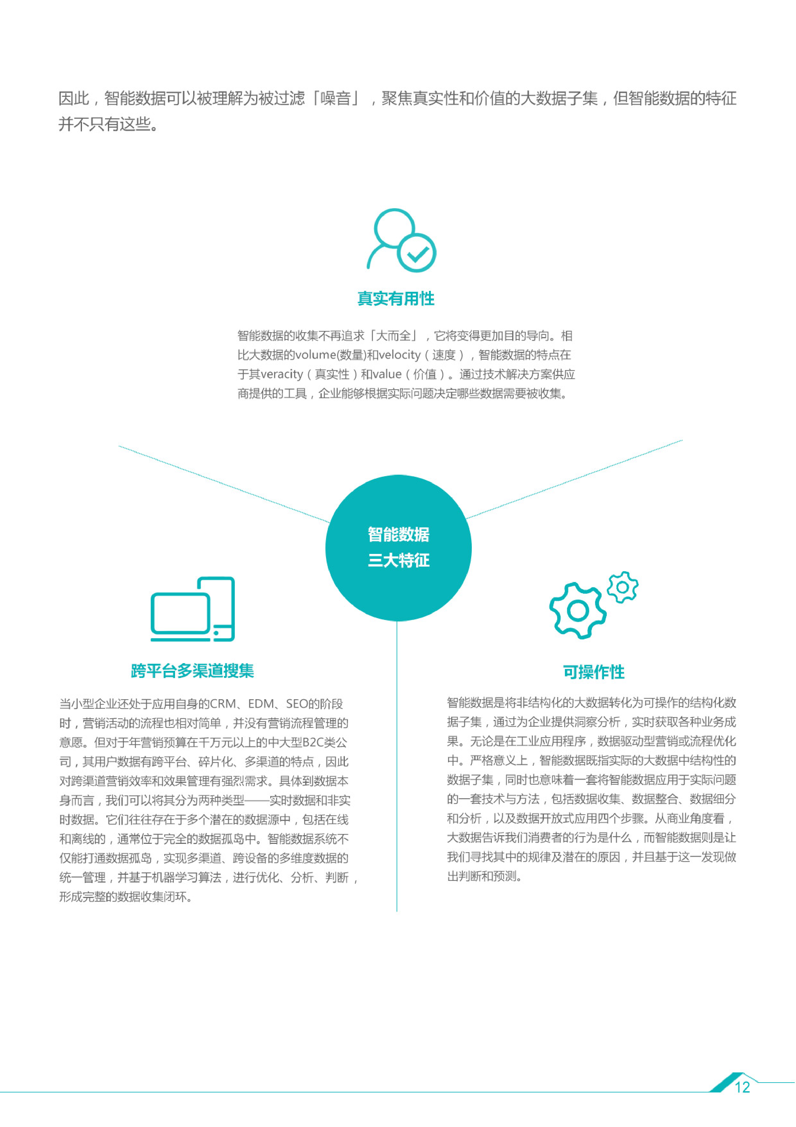 从中我们不难发现,与充满「噪音」的大数据相比,智能数据的核心特征在于真实有用性、可操作性和跨平台多渠道搜集: