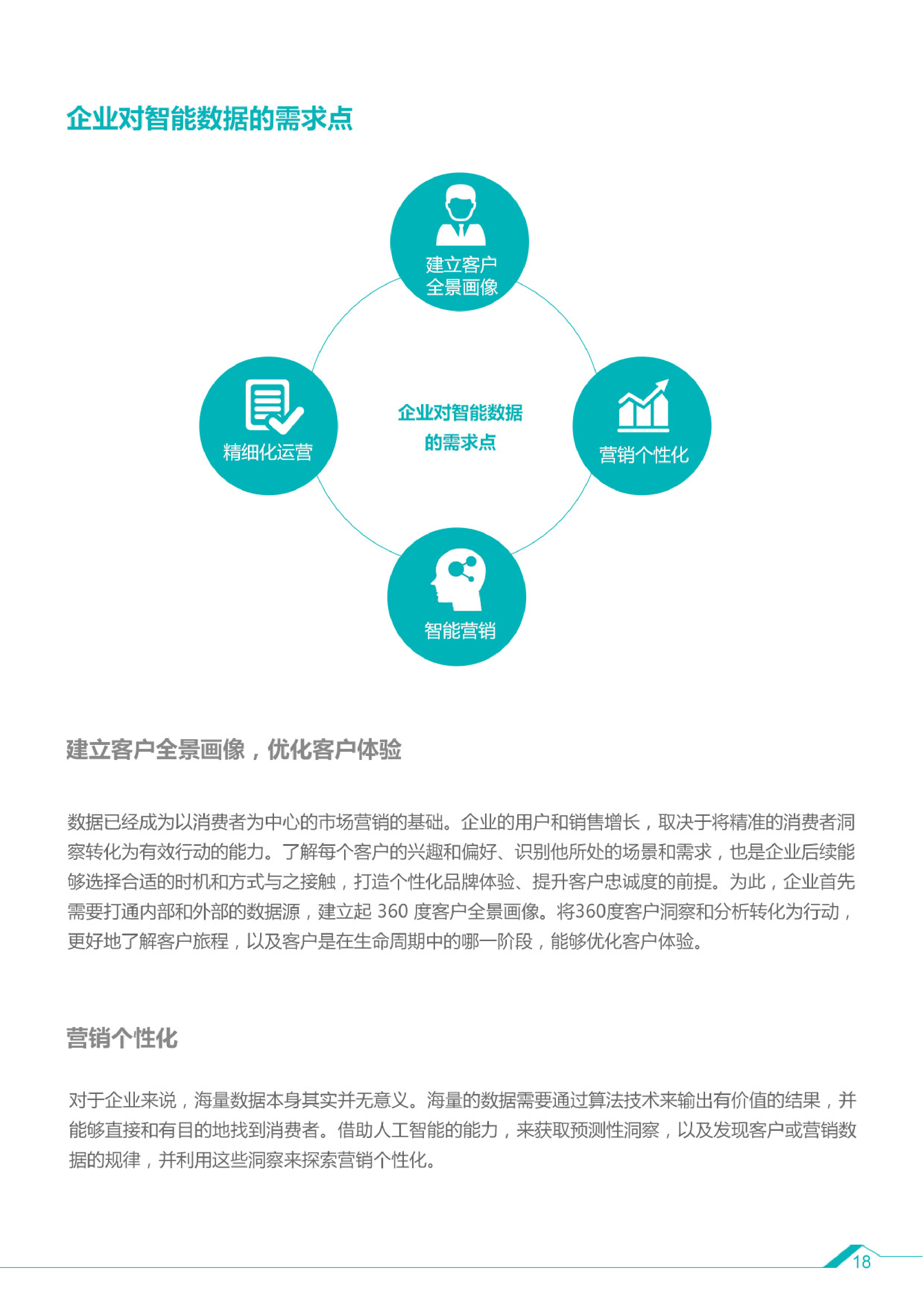 针对这些痛点,智能数据解决方案的出现能够满足企业在建立 360 度客户全景画像、营销个性化、智能营销和精细化运营上的需求。