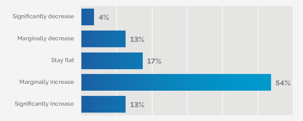 投资者看好私人科技公司的估值前景。68%的受访投资者认为私人公司估值在未来12个月内将会增长,只有15%的受访投资者认为私人科技公司的估值将会下降。这比2016年底的调查更乐观,当时只有49%的受访投资者认为估值将在2017年上涨,28%的受访者认为估值将下降。