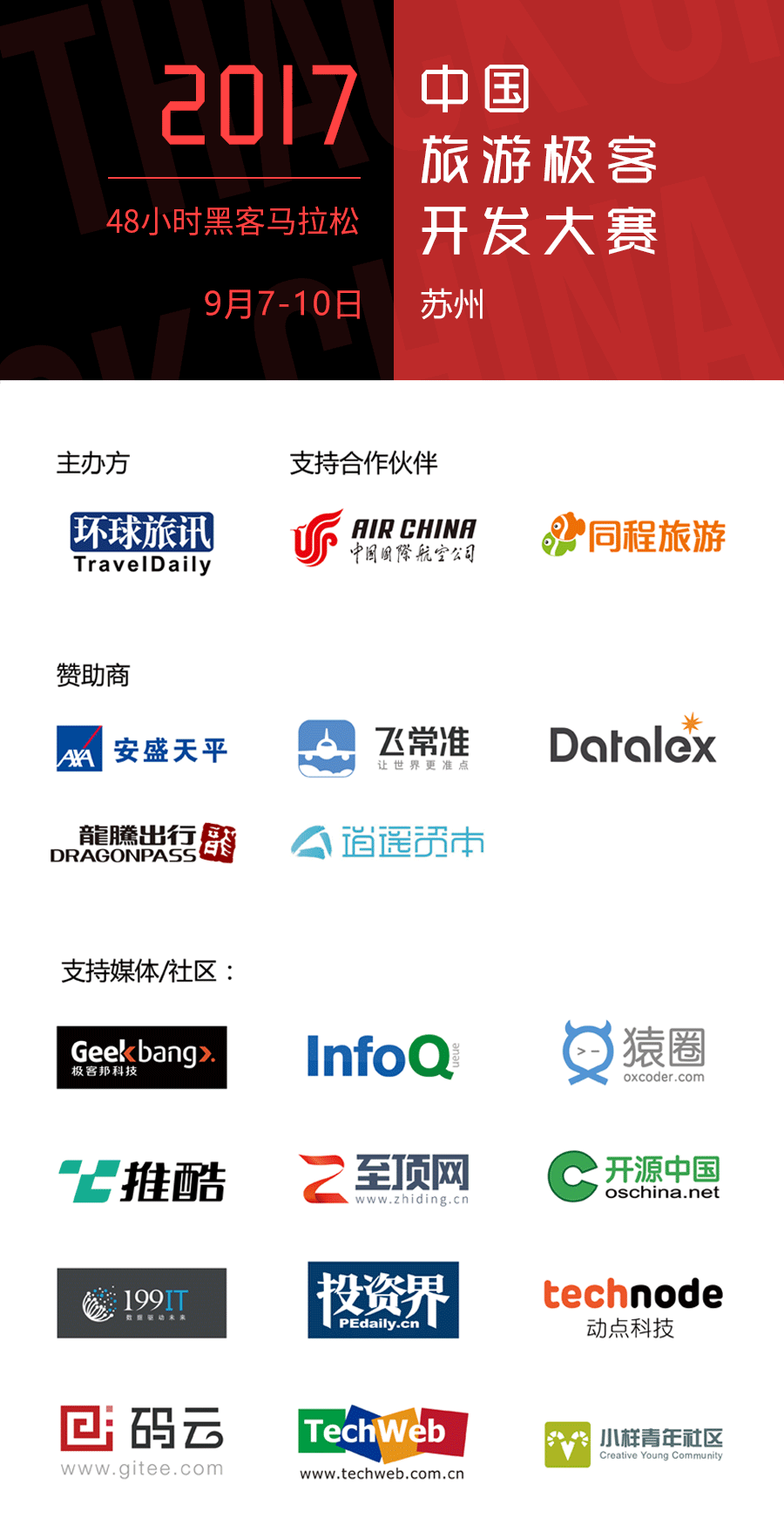 之所以这么说,是因为我们马上就能与他们——我们称之为极客——在苏州举办的 2017 中国旅游极客开发大赛 碰面。