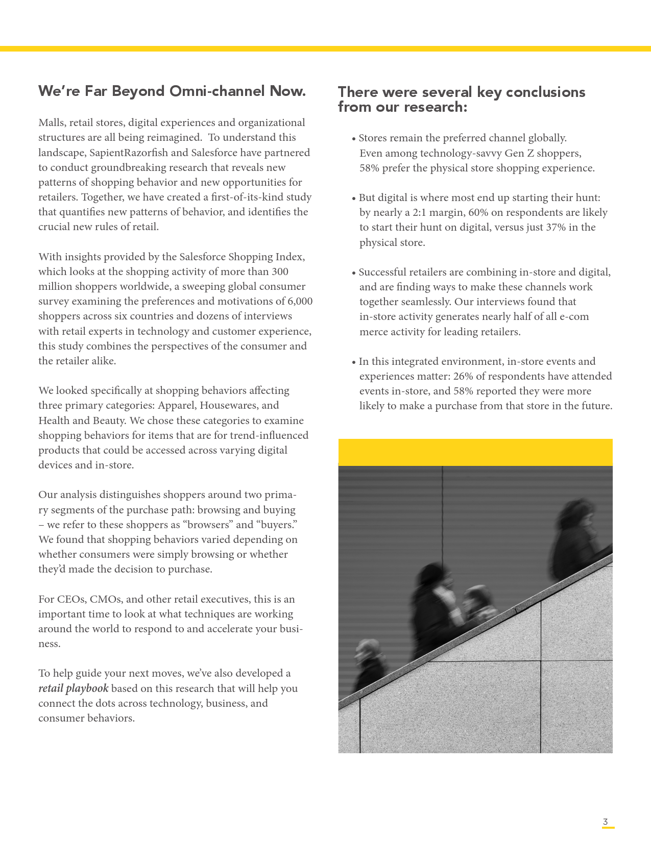SapientRazorfish与Salesforce合作日前发布了一份消费者零售报告《购买者优先零售:关于未来购物,消费者正在为我们传达什么信息》,揭示了从购物行为模式中分析推断出的全新洞察。