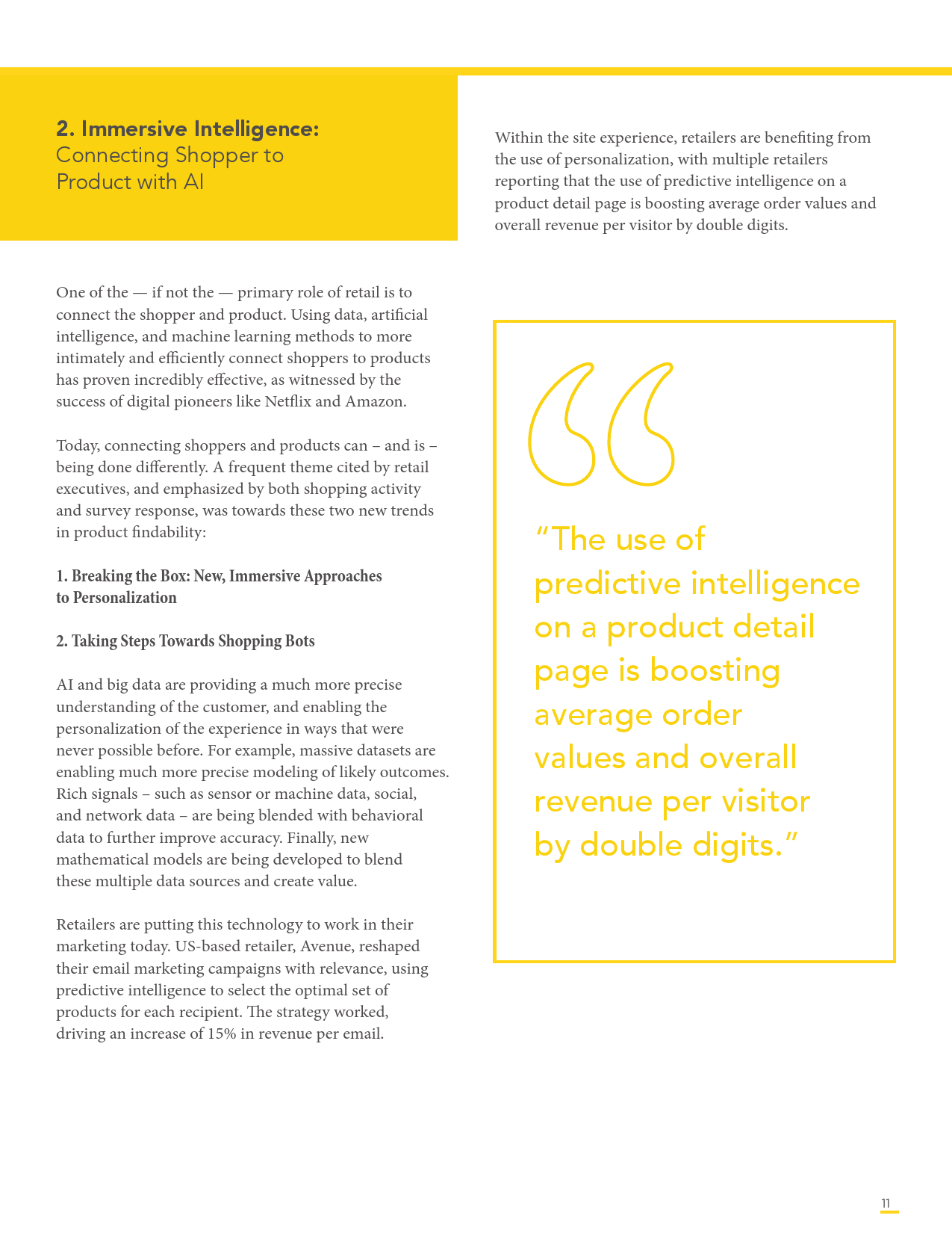 2. 沉浸式智能:利用人工智能将购买者和产品进行联接。在产品细节页面上的可预测智能技术将人均的平均购买价值和整体销量提升到了两位数。