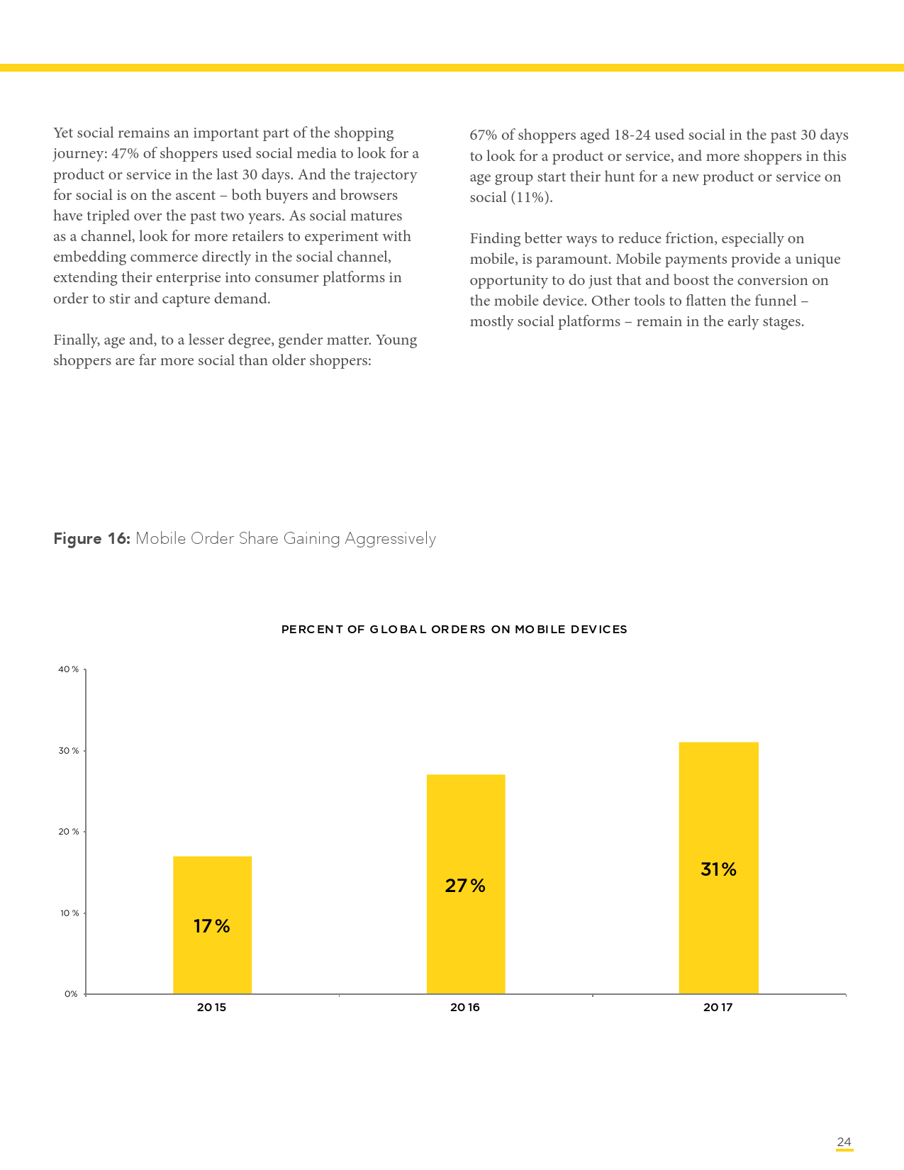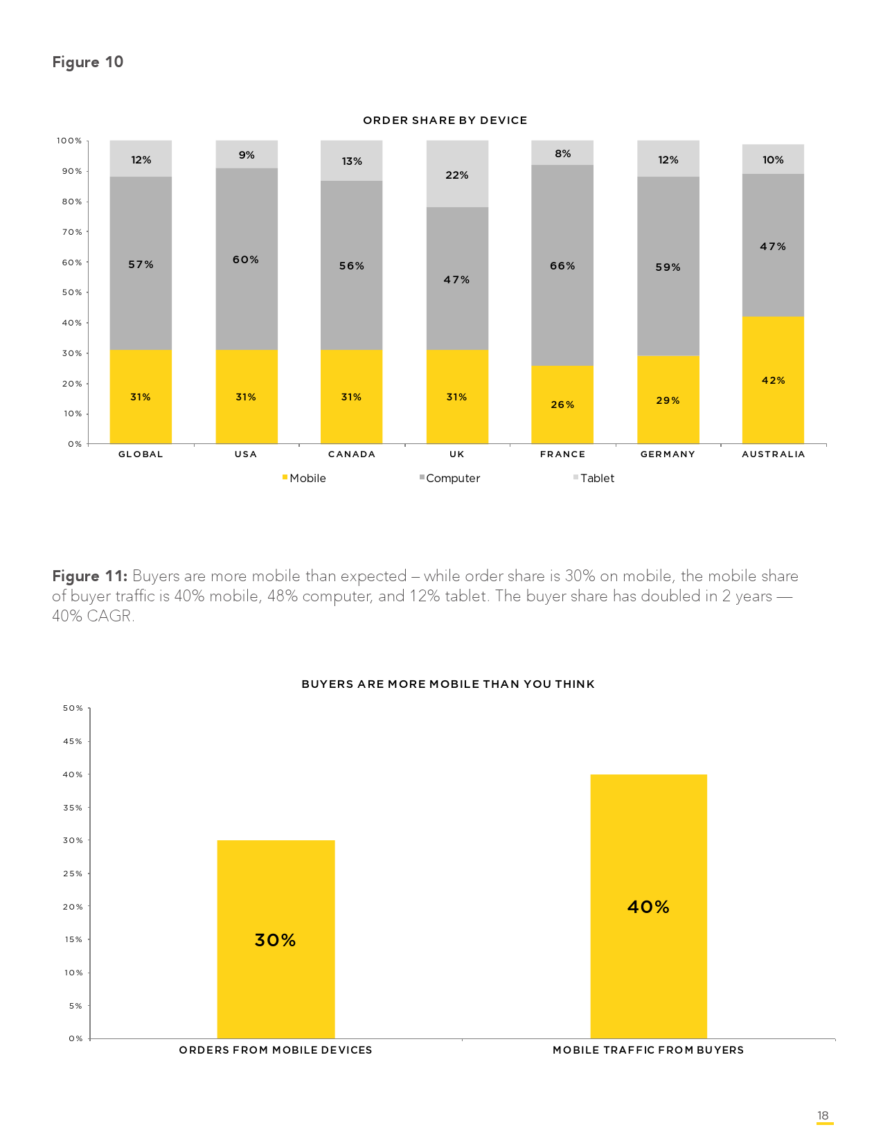 4. 摧毁漏斗:利用速度和移动支付来优化移动端流量。移动端继续为零售活动带来大量资源。在过去30天,71%的全球消费者已经使用他们的移动设备来进行购买活动。