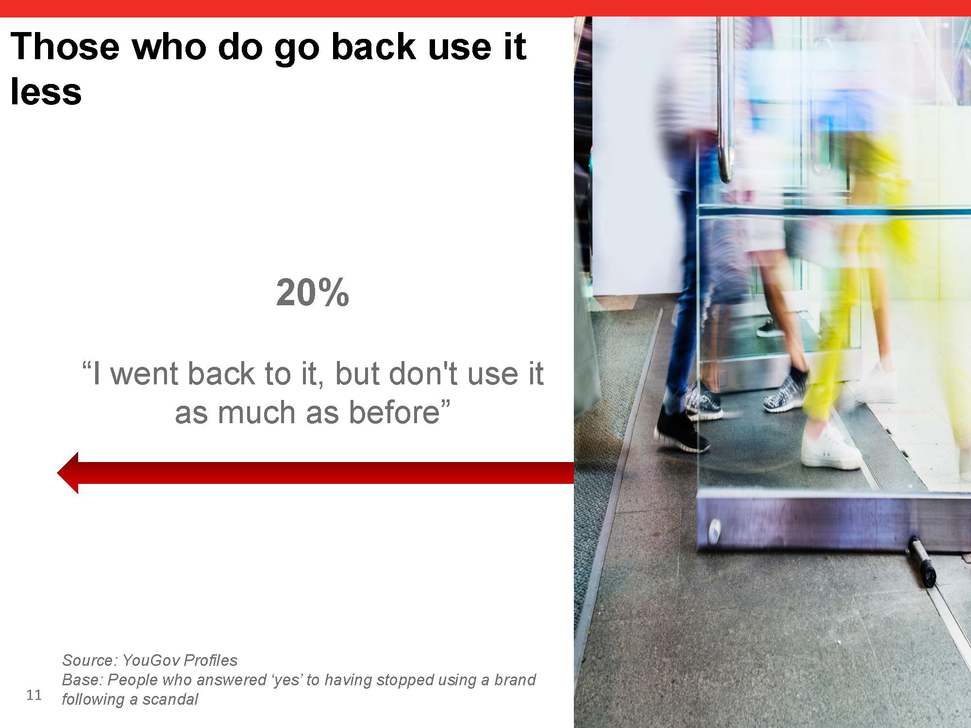 YouGov的调查显示,抵制某个品牌的消费者中,2/3至今仍在抵制中,只有1/5的抵制者重新开始使用该品牌,尽管和过去有差异。