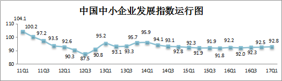 中国中小企业协会:2017年Q1中国中小企业发展指数为92.8