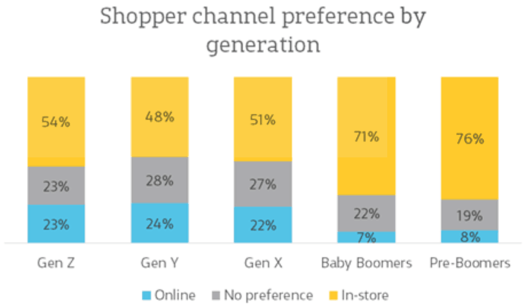 报道发现,传统实体店依然是受到各代人青睐的购物方式,总体来说,60%的人都更喜欢逛实体店。