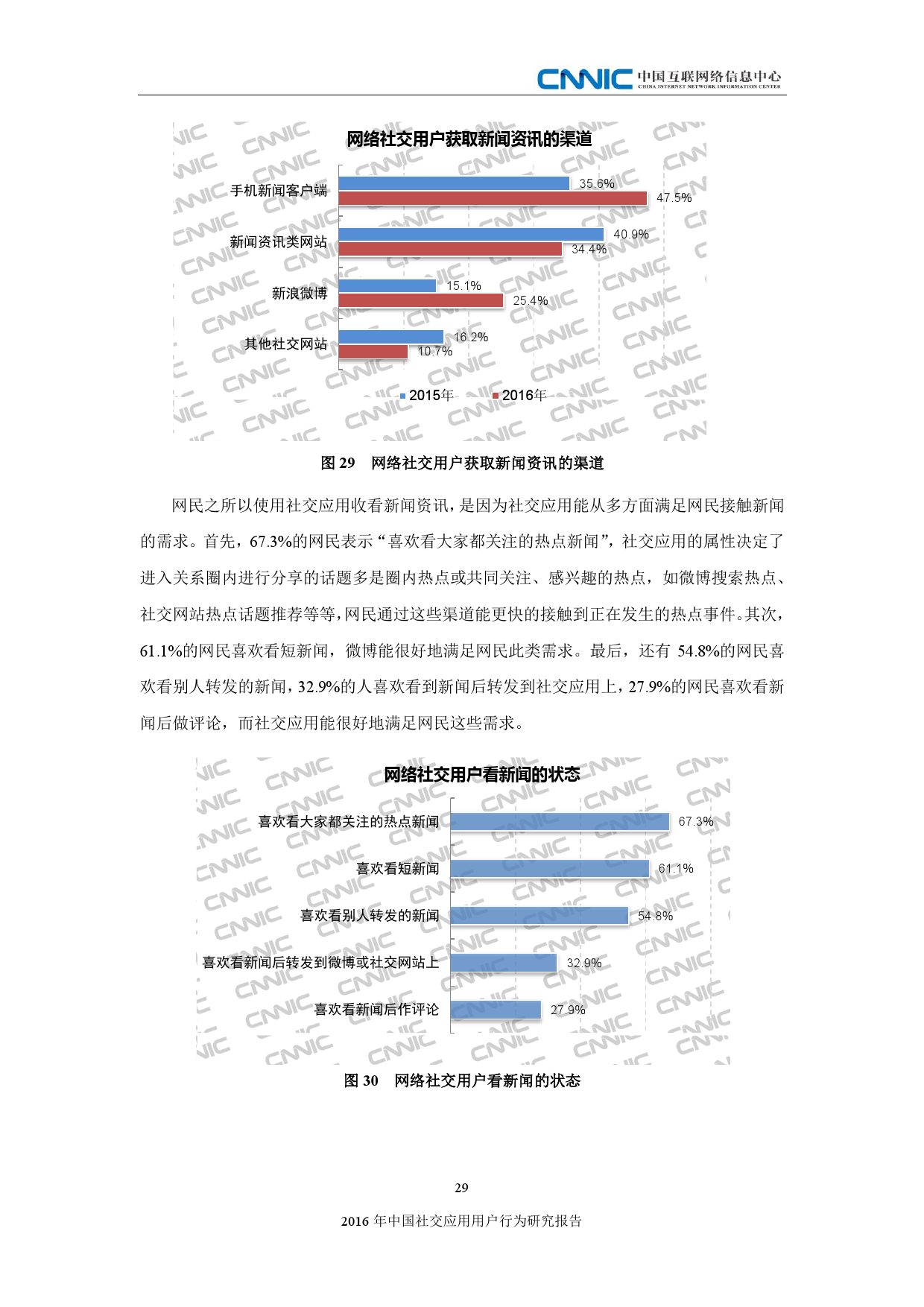 截至2016年12月,近一半的网络社交用户通过社交应用来获取新闻,高于使用手机新闻客户端、专业新闻资讯网站获取新闻的比例,社交应用成为网民获取新闻资讯、传播热点事件的重要渠道。社交应用的属性决定了进入关系圈内进行分享的话题多是圈内热点或共同关注、感兴趣的话题,用户通过这些渠道能更快接触到正在发生的热点事件,通过社交应用对热点事件进行分享和讨论,一方面打造了多元化、互动化的新闻阅读体验,另一方面也提升了用户黏性和用户使用率。