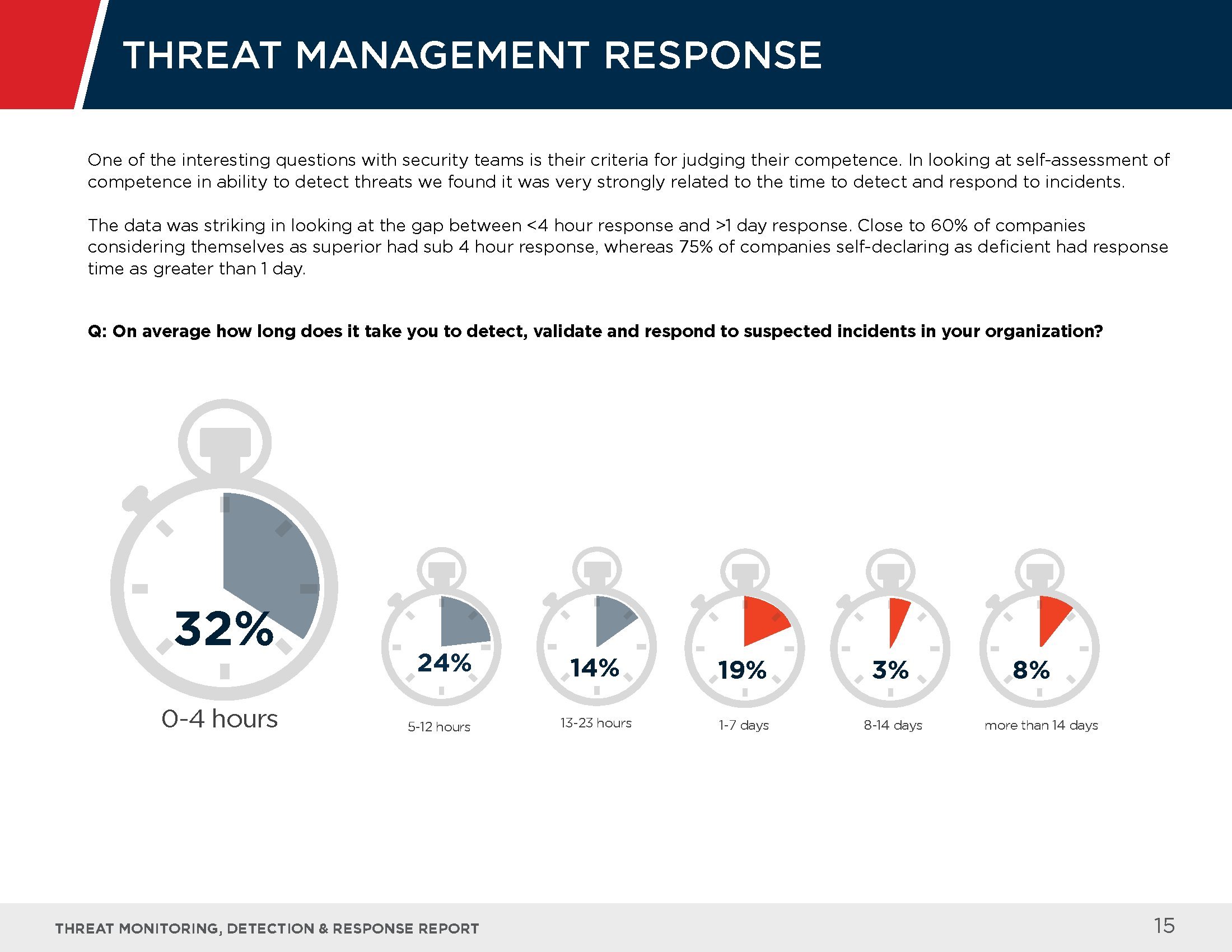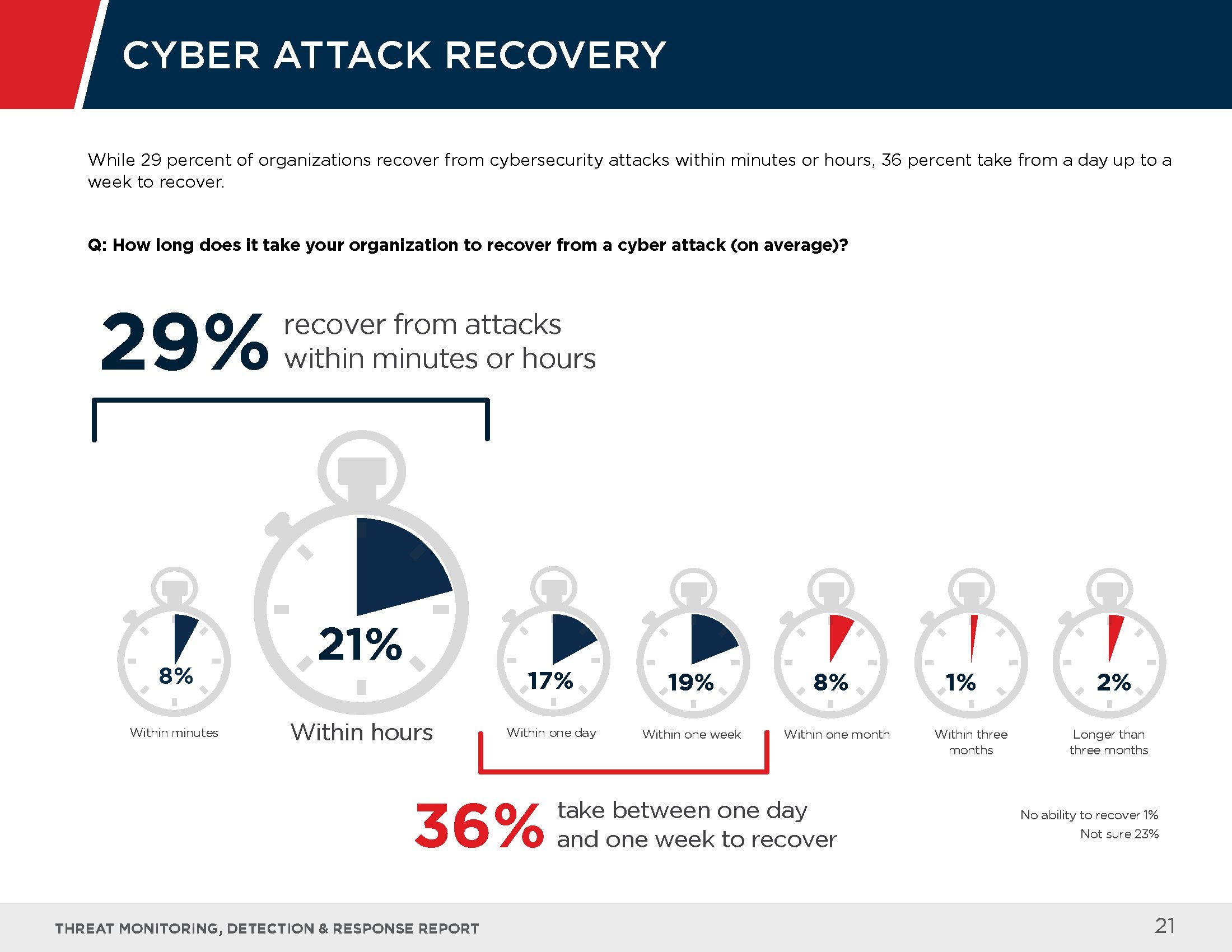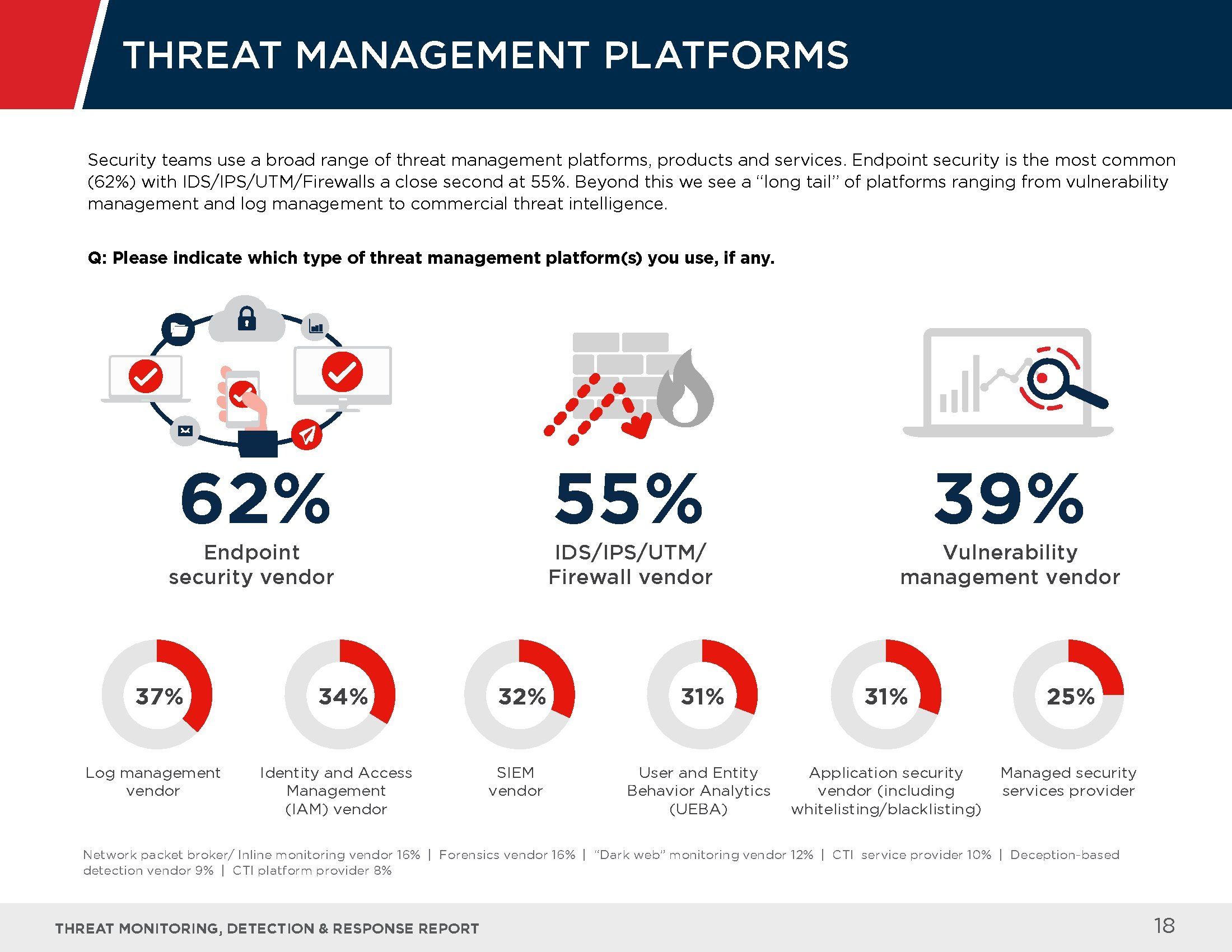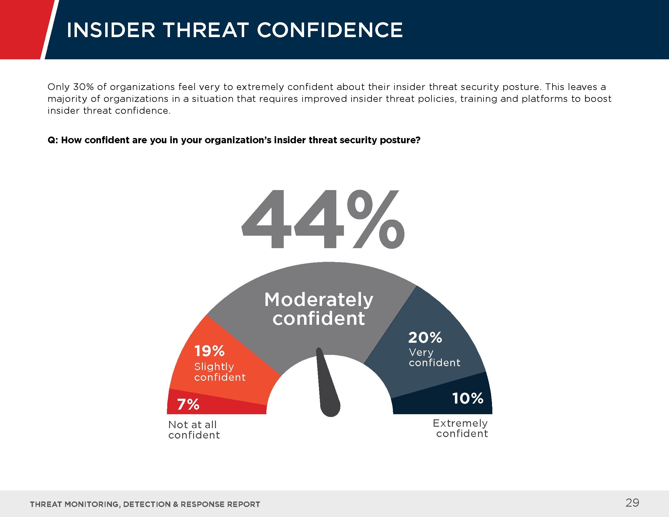 受访者指出了应对这些高级威胁的最大挑战,其中包括检测威胁的能力(62%)、缺乏先进的安保人员(41%),以及反应速度缓慢(23%)等。
