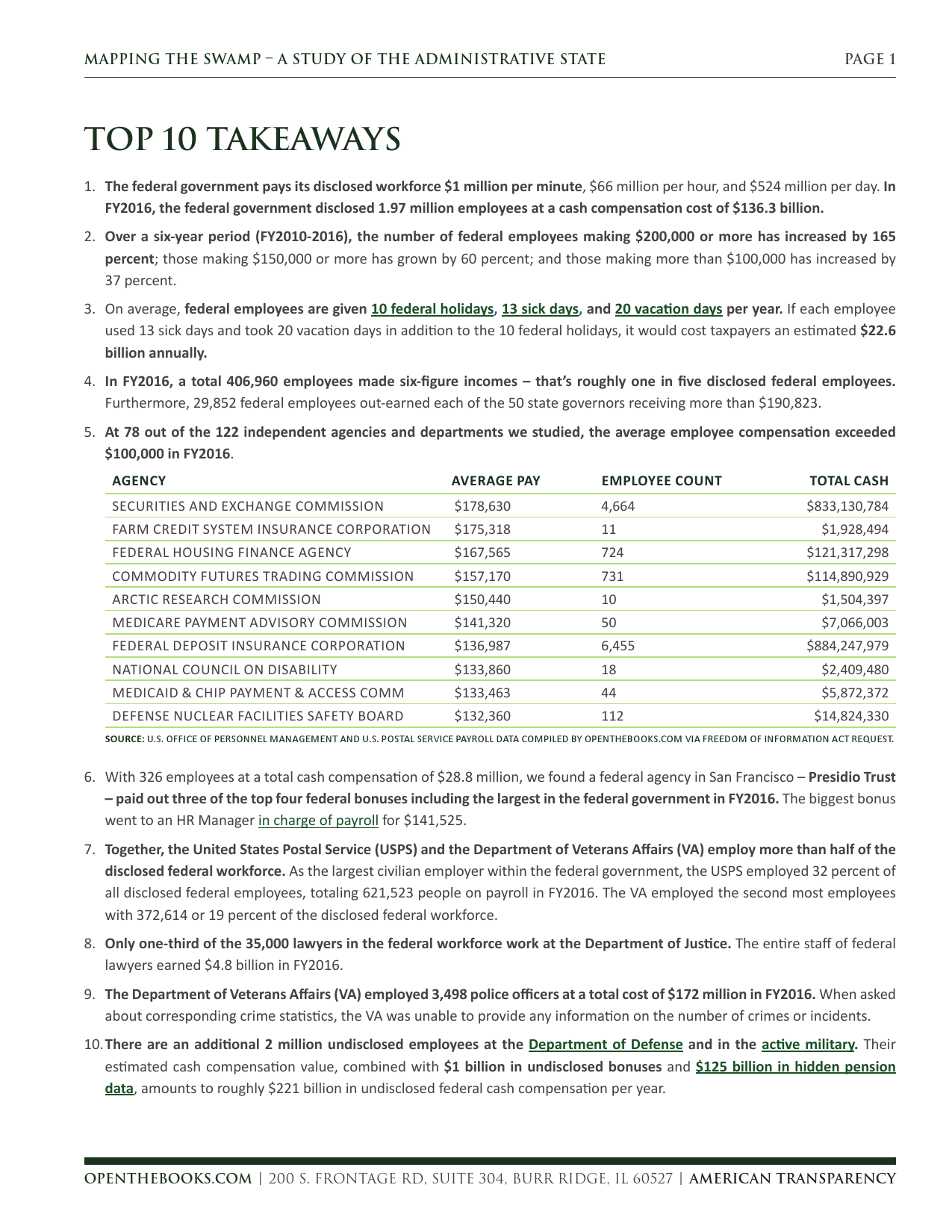这份长达40页的报告题目为《揭示沉没地带》(Mapping the Swamp),该报告由政府监督机构“翻开账本”(Open The Books)发布,该报告重点关注联邦政府的“规模、作用和权力”,并发现联邦政府对高薪员工的工资支出正在上升。