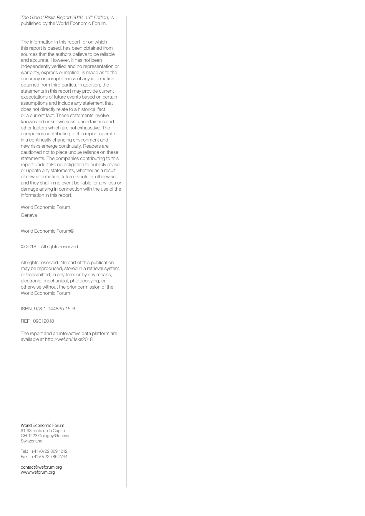 《2018年全球风险报告》发表之际,正值全球经济全面增长。任何向领导人提供的喘息空间都不应被浪费,在过去一年中,面对不确定性、不稳定和脆弱性的激增迹象,面对系统性挑战的紧迫性日益加剧。