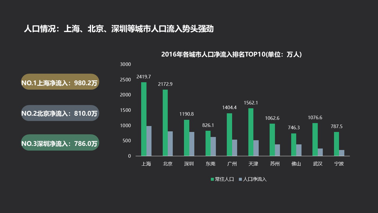 从居住需求来看,上海城市人口流入势头强劲,在全国各大城市排名中居首。从成交情况来看,二手房占据交易主导,约占75%;新建商品房成交量约占25%。从供应来看,多主体供给、多渠道保障、租购并举是未来方向,“十三五”期间规划新增住房170万套,其中商品住宅55万套;二手房方面,目前挂牌出售约17万套;租赁方面,“十三五”规划新增租赁房源70万套。