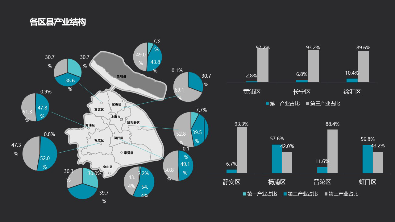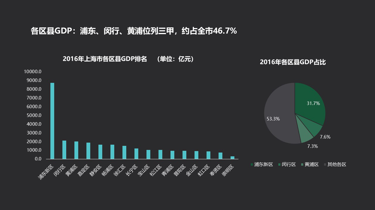 从各区县情况来看,各区经济稳中向好,其中,浦东、闵行、黄浦GDP位列三甲,约占全市46.7%。在常住人口方面,各区常住人口有从中心城区向外围扩散的趋势,其中嘉定、奉贤、崇明接纳新增常住人口较多。