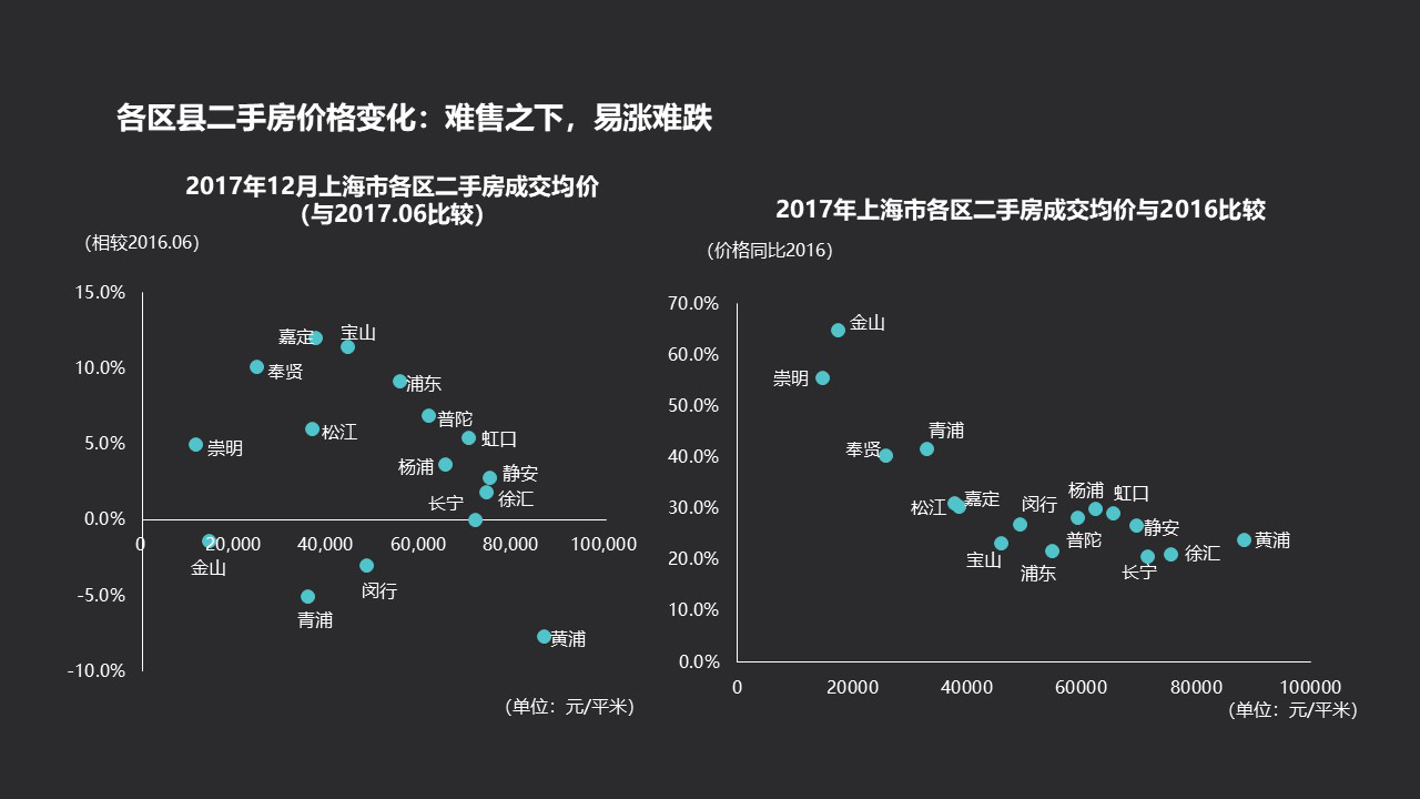 上海链家首席市场分析师张月表示,经济发展向好,产业结构进一步优化,各区服务业进一步向高端延伸,拓展经济新领域潜力逐步显现;尤其是非中心城区,吸引了更多的人口流入。从整体的住房成交来看,二手房(新建商品房)价格均呈现“难售(限价)之下,易涨难跌”的态势。总体来看,限购政策的影响,成交量整体下滑,房价得到抑制是事实,但从近半年情况来看,房价以小幅调整为主,下滑幅度不大。