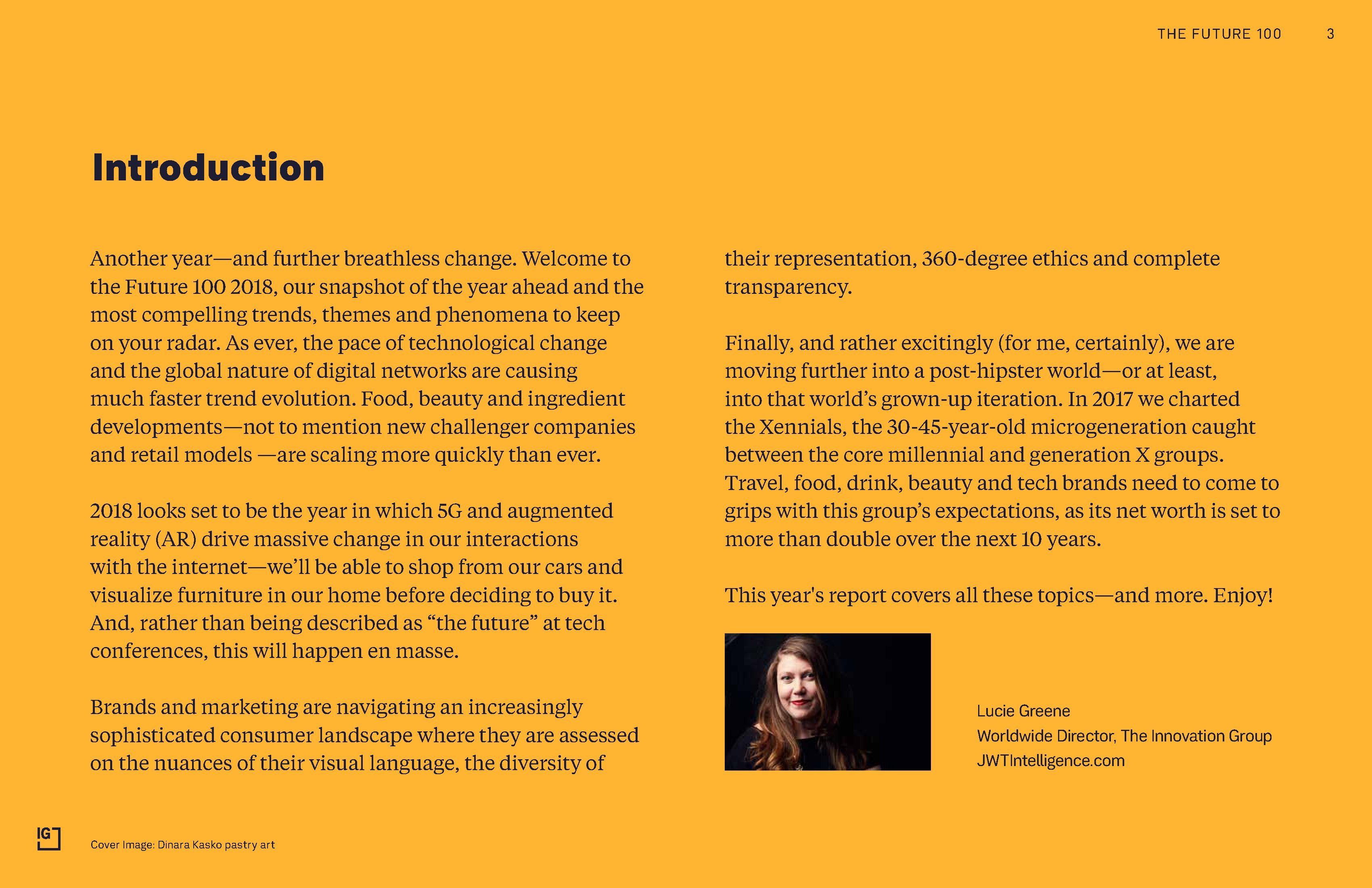 Innovation Group发布了“2018年未来100报告”,从文化、科技和创新、旅游、品牌和营销、食品和饮料、美容、零售、奢侈品、医疗保健和生活方式等方面展望了2018年的流行趋势、主题和现象。