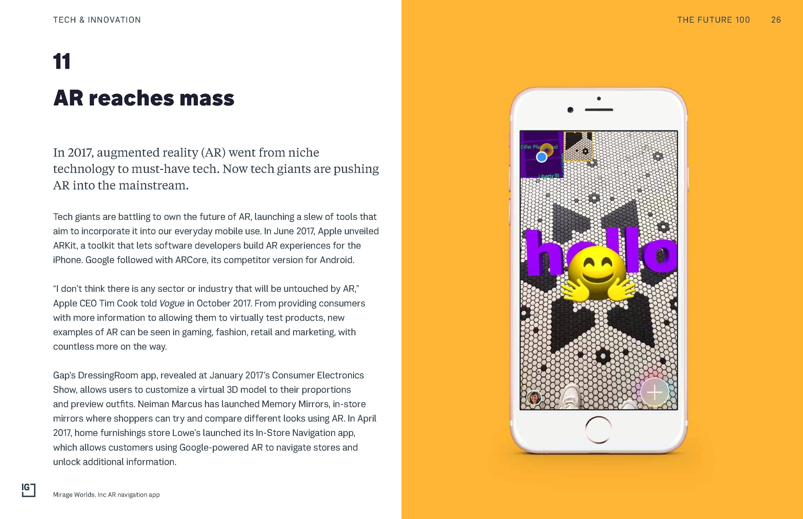 2018年,5G和增强现实(AR)将快速改变我们访问互联网的方式,我们可能在车上进行购物,在购买家具之前就能看到家具摆设到自己家的样子。这些科技不再是“未来”,而是现实。此外,物联网和人工智能越来越渗入我们的生活。根据Innovation Group的调查,全球2/3的智能手机用户对支持语音助手的电视(69%)和开关(66%)感兴趣,近半数人对智能冰箱感兴趣(45%)。