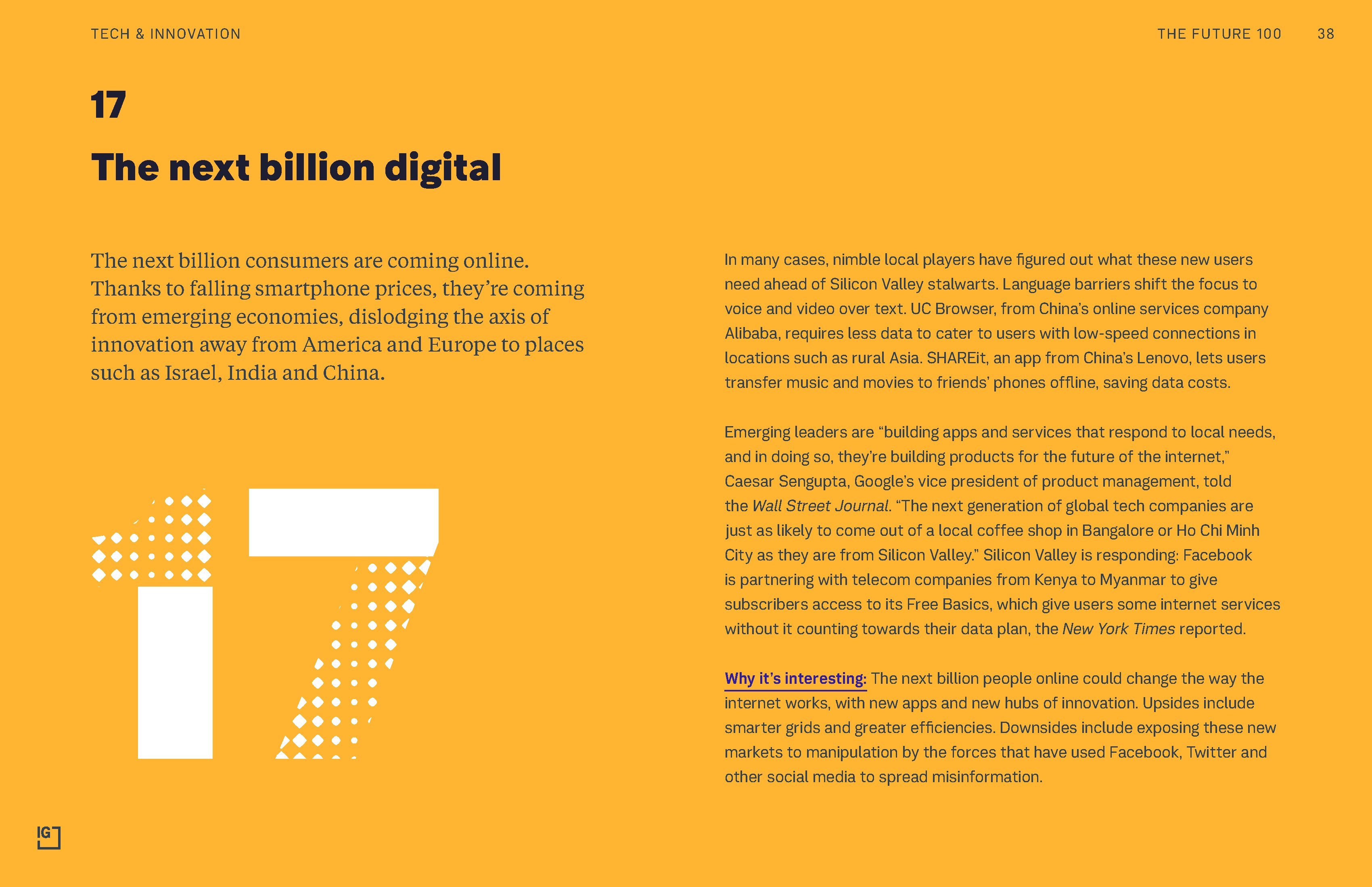 新晋10亿网民将来自远离轴心的新兴国家,如以色列、印度和中国,得益于智能手机价格下降。