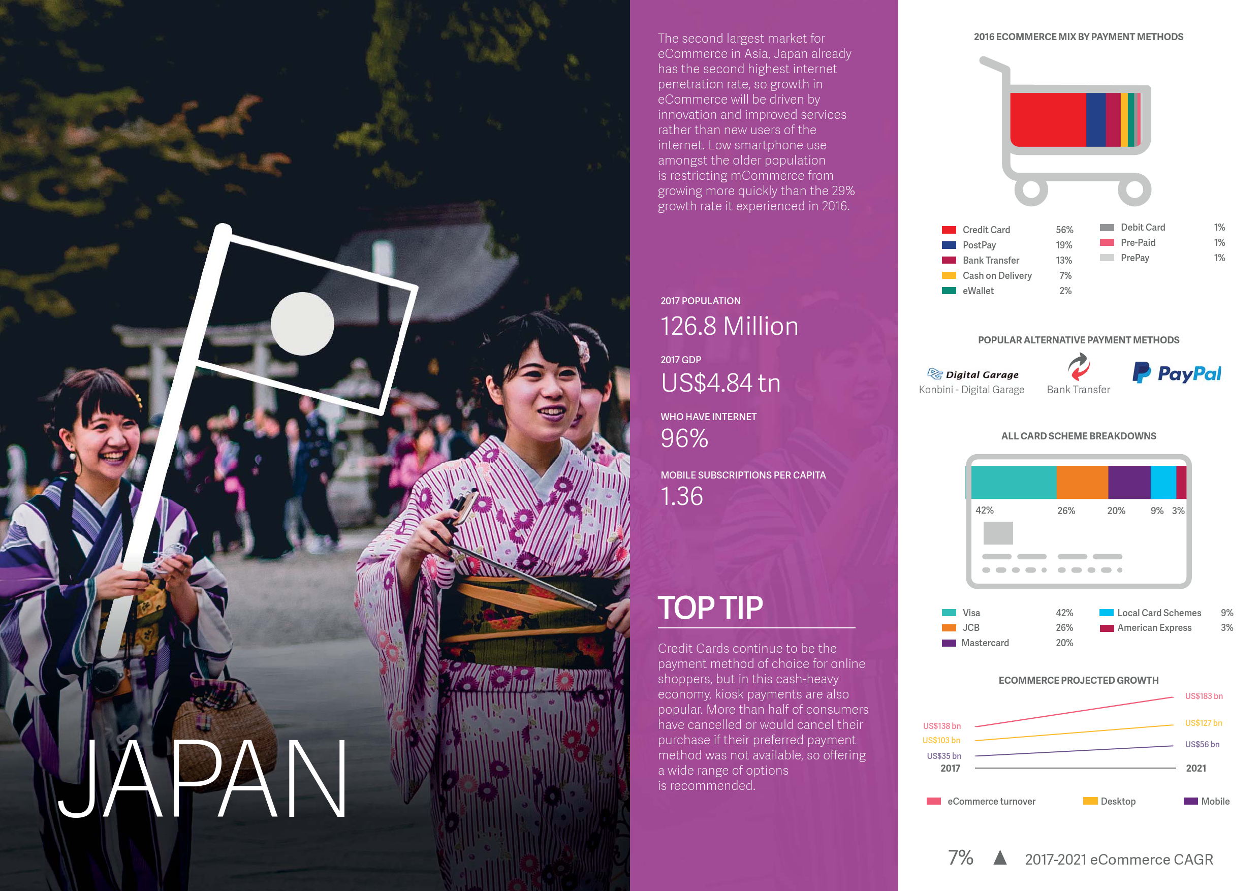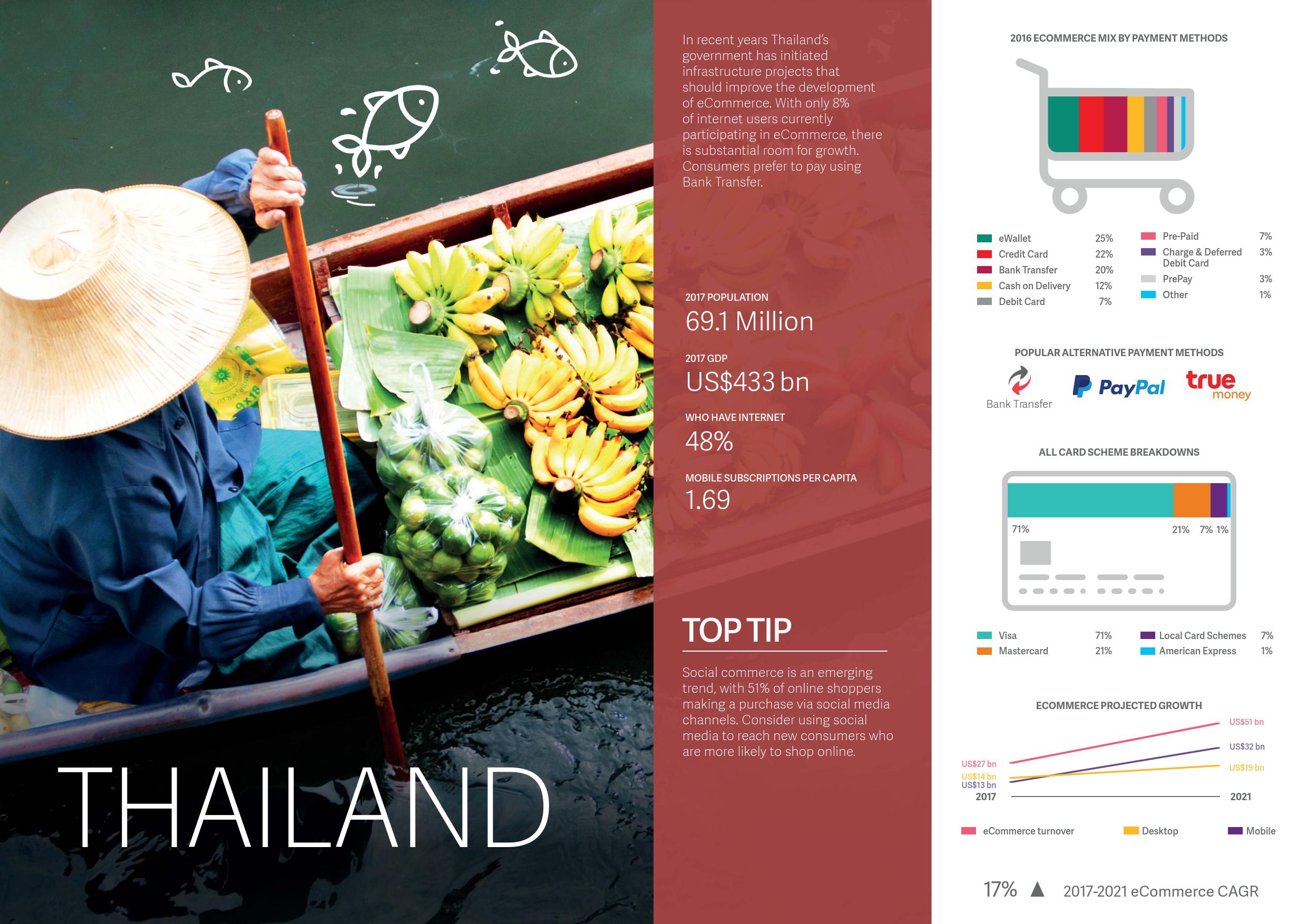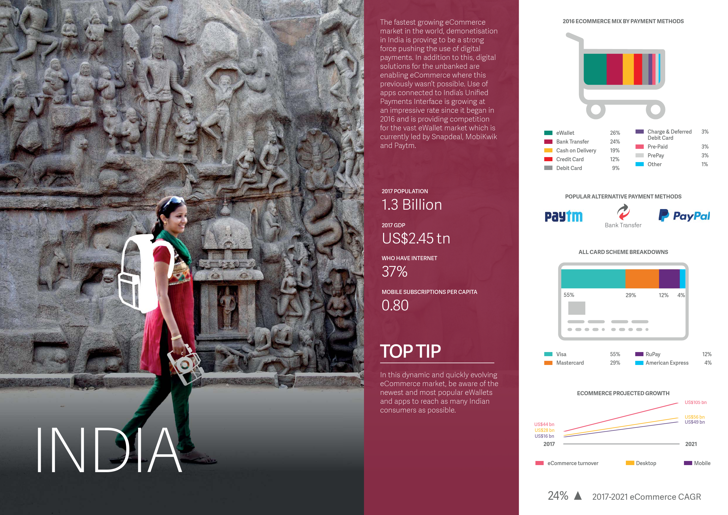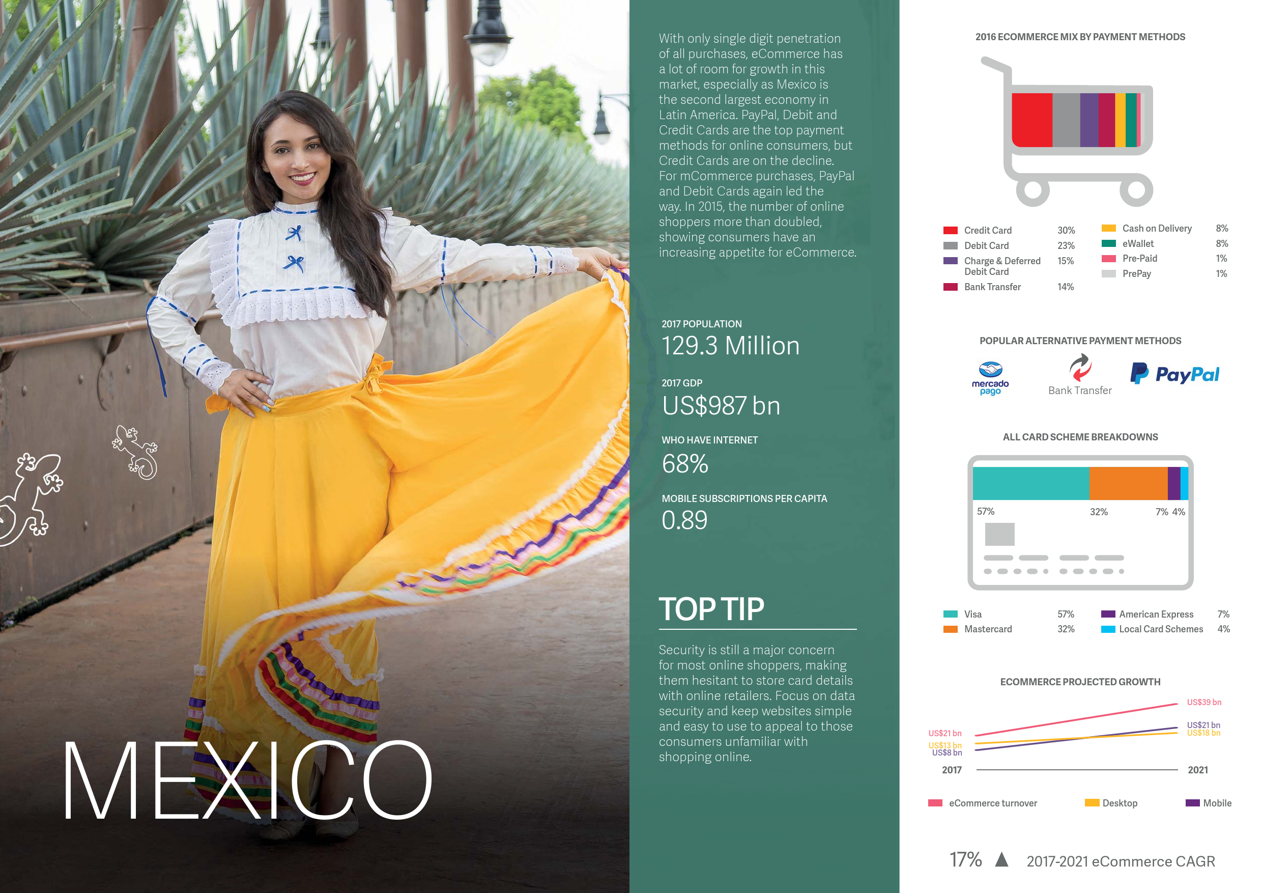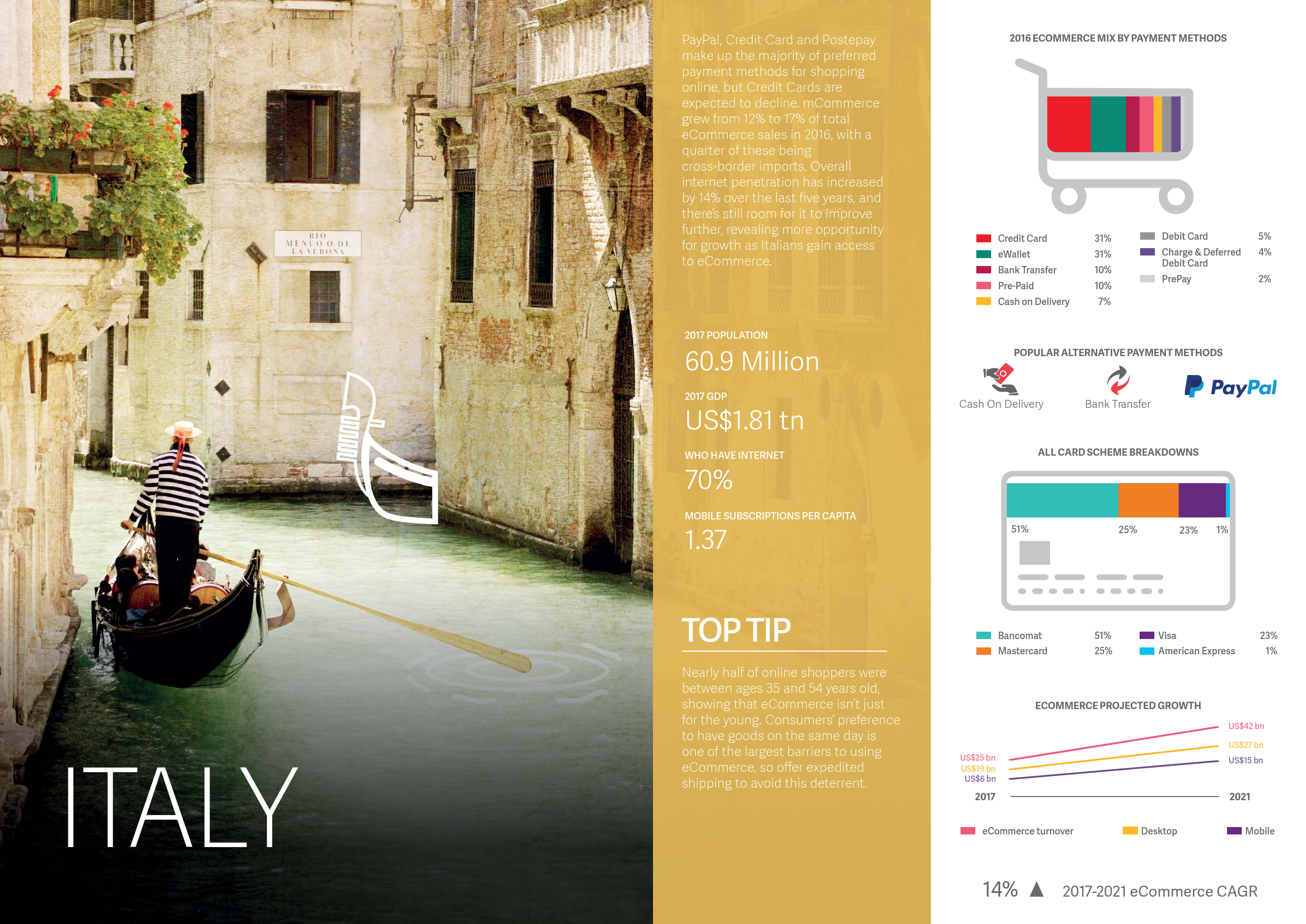 - 银行转账预计将超过信用卡成为中国市场第二大支付手段。至2021年,银行转账将占中国电子商务市场的14.2%。