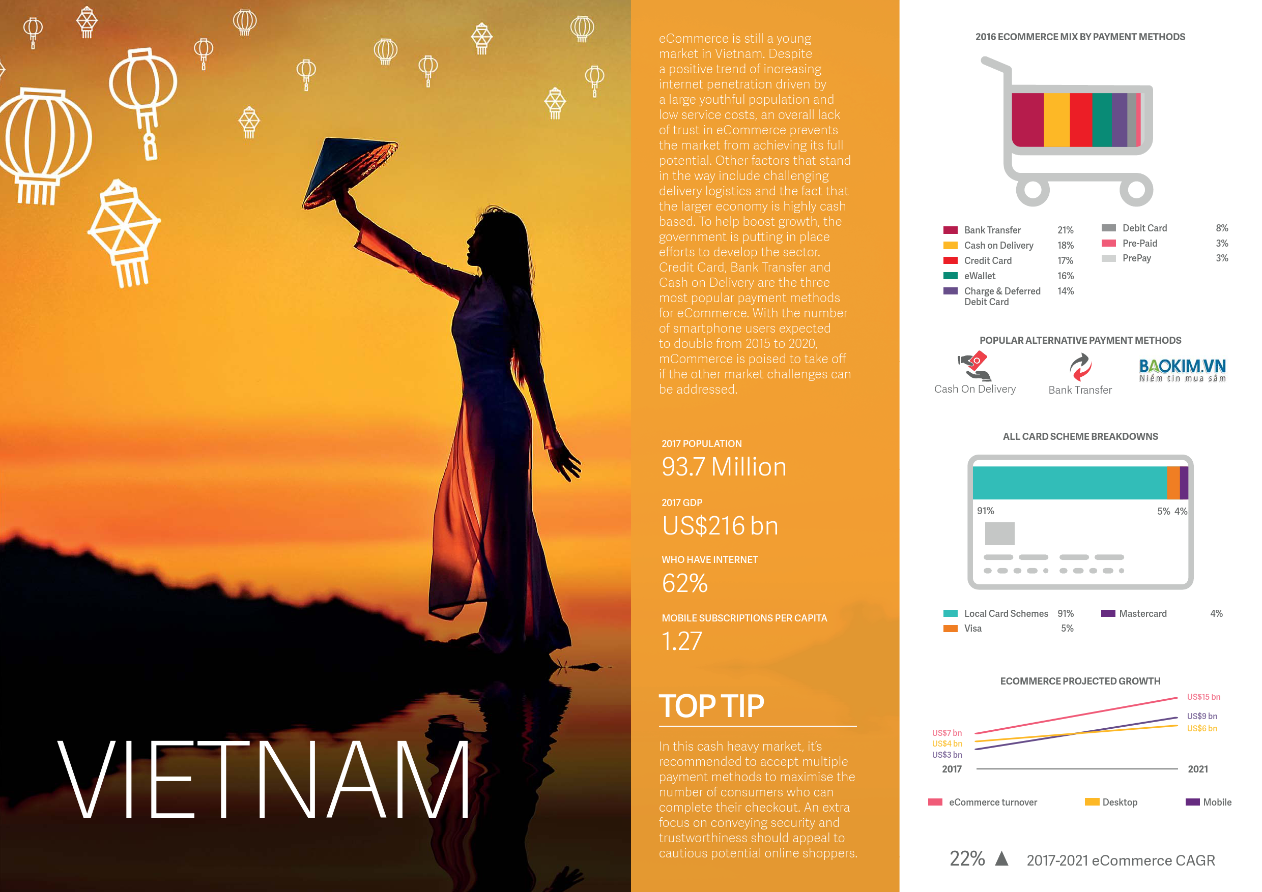 - 继电子钱包之后,2017年度最受欢迎的支付方式分别是:信用卡(10%),银行转账(8%),以及货到付款(8%)。