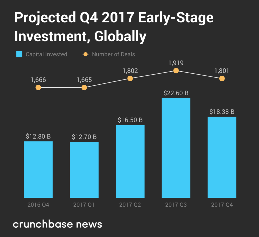 从2017年整体趋势来看,13700宗天使和种子投资获得85亿美元资金,交易量和投资分别增长1.6%和8.1%。