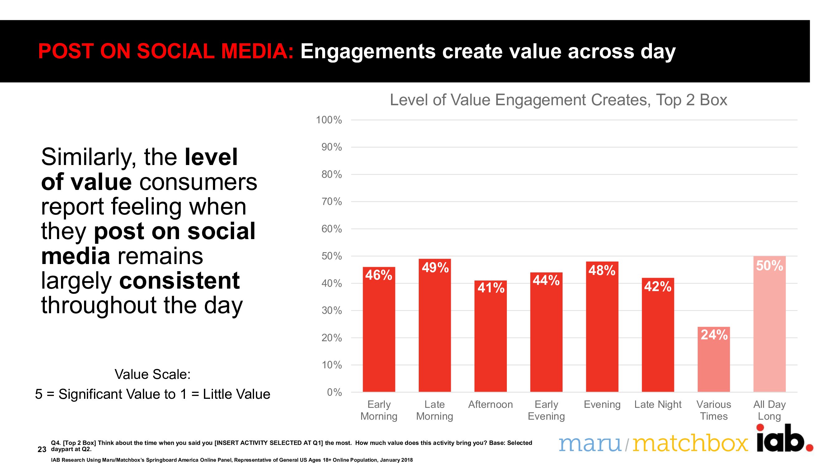 大部分不会每天留出特定时间进行这些活动,因此某些天媒体接触量会高于其他日子,但是大多数人会在不同的触点从事这些活动。报告发现的最常见的八项活动包括: