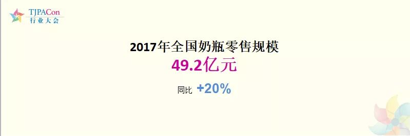 2017年全国奶瓶零售规模为49.2亿元,同比增长20%。