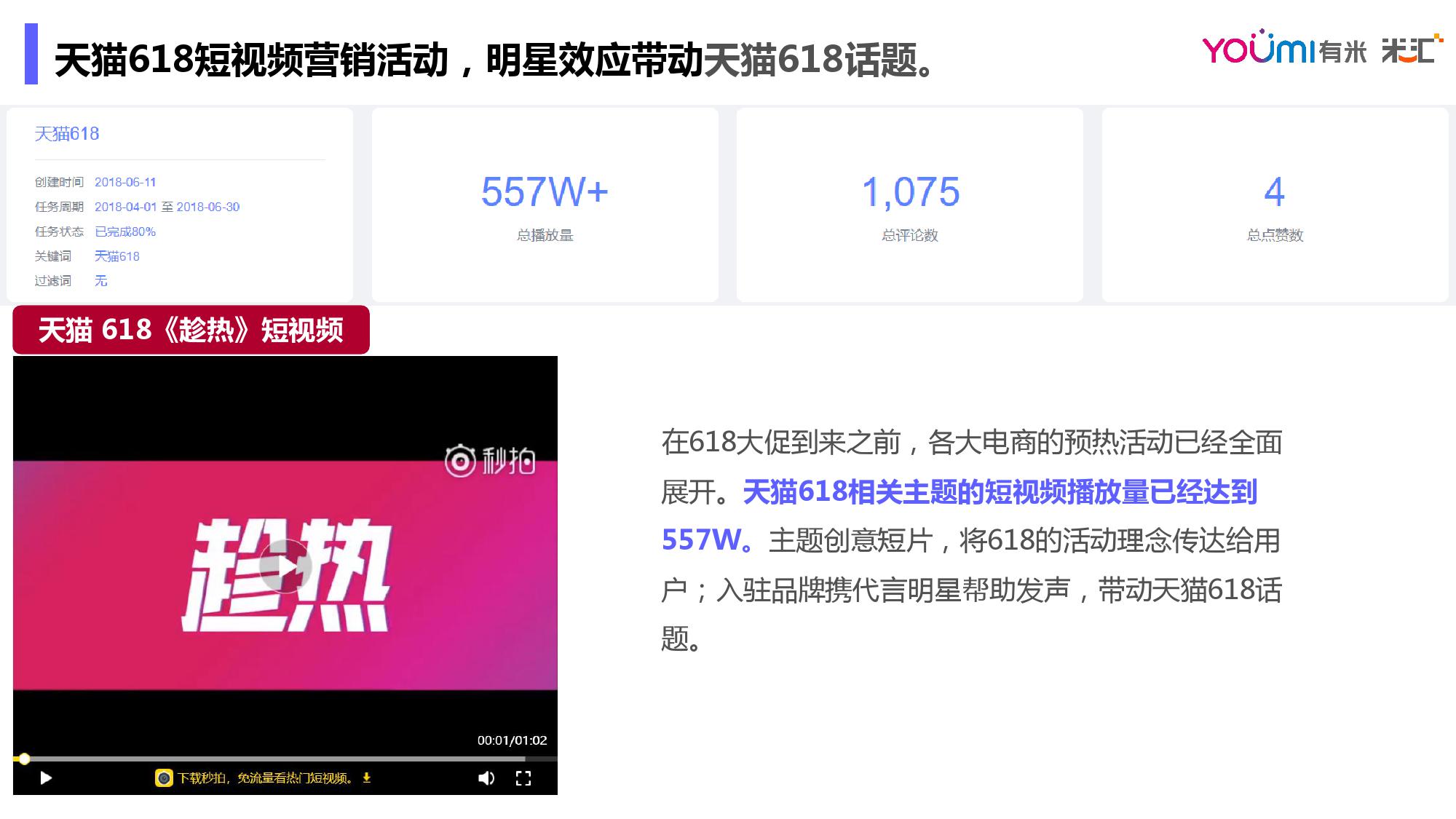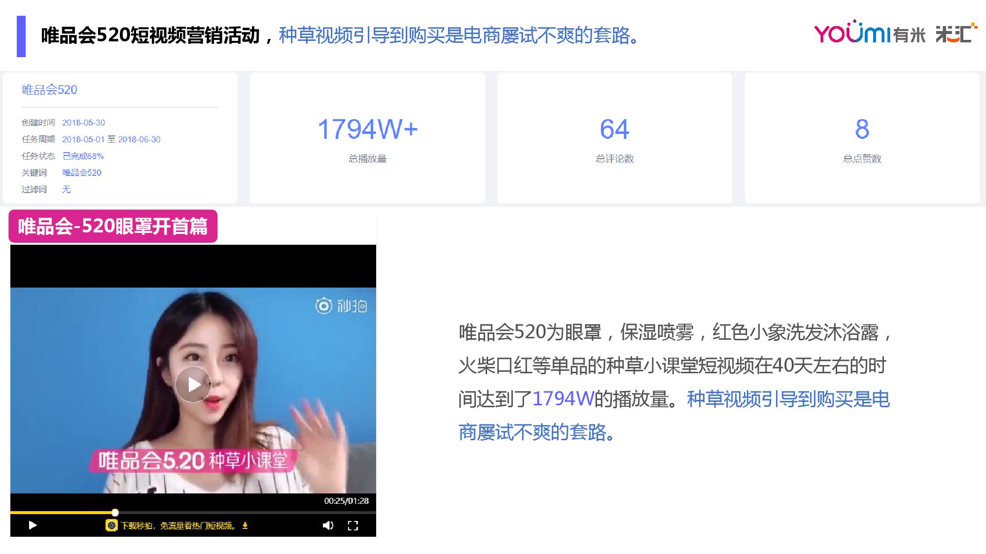 米汇:2018年3-5月份电商短视频营销分析报告 PDF版本将分享到199IT交流群,支持我们发展可加入! 更多阅读:QuestMobile:2020中国移动购物行业“战疫”专题报告快手科技:2025年Q1营收326.1亿元,同比增长10.9%QuestMobile:2020儿童经济洞察报告 线上线下儿童经济加速闭环 种草成消费驱动器蝉妈妈&蝉魔方:2024抖音电商双11大促复盘报告2013年化妆品行业七大电商网络营销趋势联邦快递全球枢纽:全球最大快递如何应对电商时代挑战?ASO100:2016年2月电商 App 竞争报告大数据驱动下的电商个性化推荐(PPT)知微:618电商大促微博营销效果数据分析大数据时代的电商–信息图2022年德国电商市场报告PDD:疫情期间初心不改 强劲补贴用户和商家 业绩增长快亏损也大Piper:青少年支出同比下降4%拼多多:2019年GMV突破万亿元,买家数达到5.85亿人亚马逊:4Q19营收同比增长21%,Prime会员达到1.5亿人