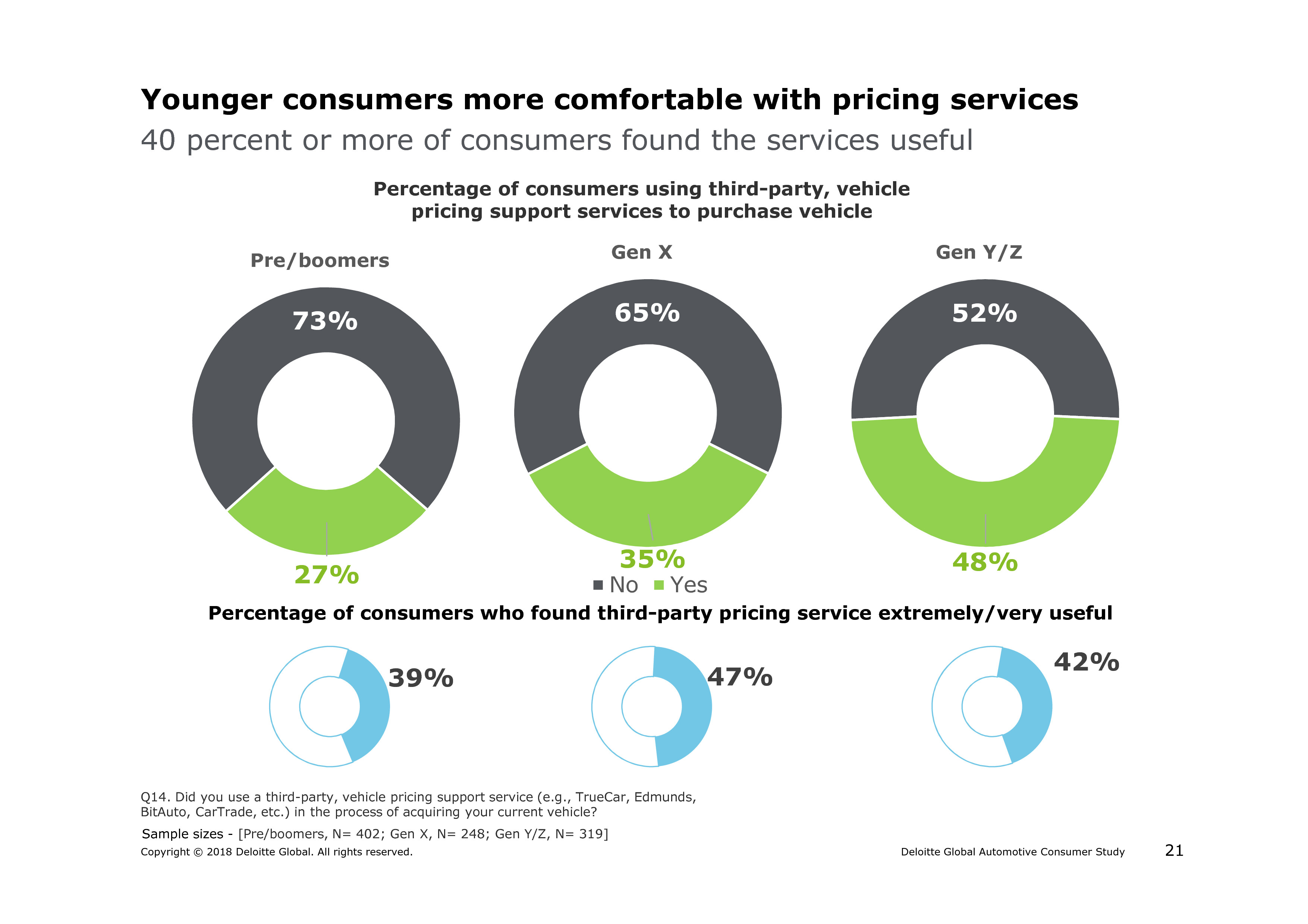 69%的消费者多次访问经销商网站,57%的消费者认为消费体验有些或非常重要。16%的消费者在购物当天就买车。虽然销售人员和印刷册子最有用,但对年轻消费者来说,网上信息更重要。在买车过程中,过多的文书最让消费者头疼。