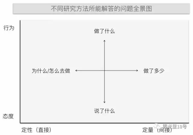这两个维度的区别可以归纳为『人们说了什么』和『人们做了什么』(这两个有着明显的不同)。态度研究的目的通常是为了了解或测量人们所表达的意见和看法,这也是为什么态度研究被大量用在市场部门的原因。