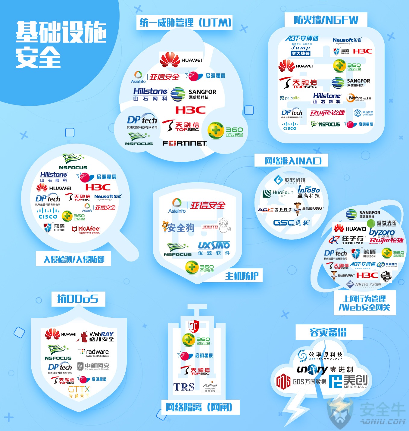 与上期全景图(2018年1月)相比,在云安全、安全智能、业务安全三大领域,分别增加了云主机安全、用户行为分析和管网综平台的细分领域,并将身份认证与访问管理中的“IAM/堡垒机”拆成两个细分领域。此外,增删修改了一些在企业安全市场不太活跃的提供商和服务机构,并在一些细分领域如工控安全,数据防泄密等领域做了较大的调整。