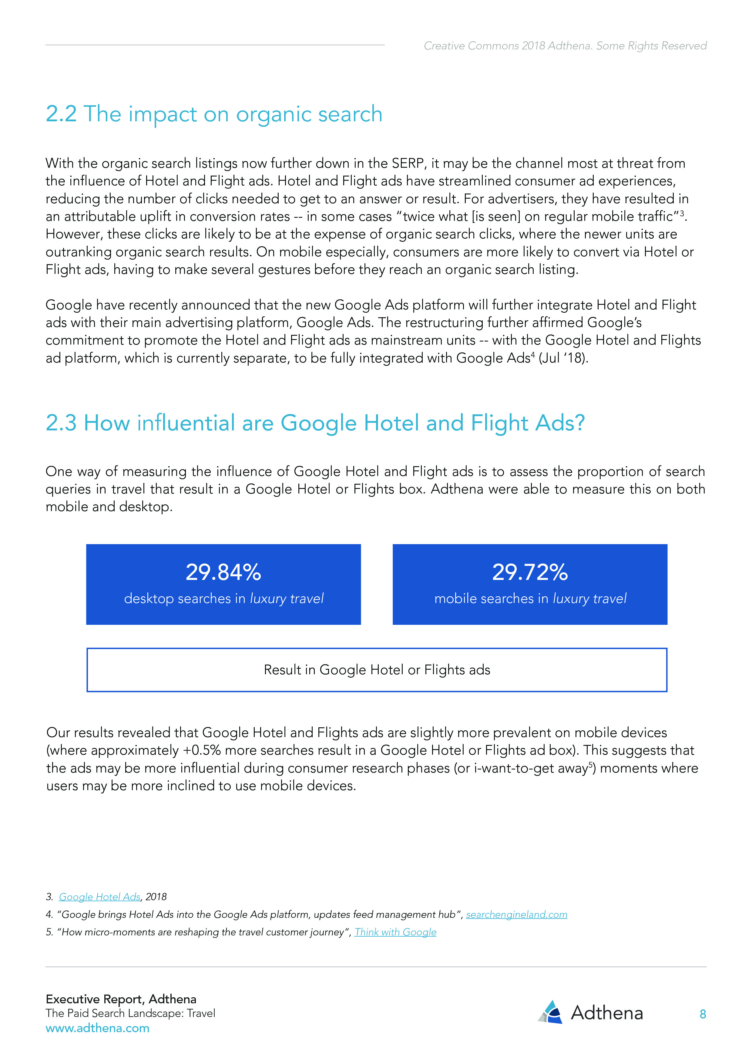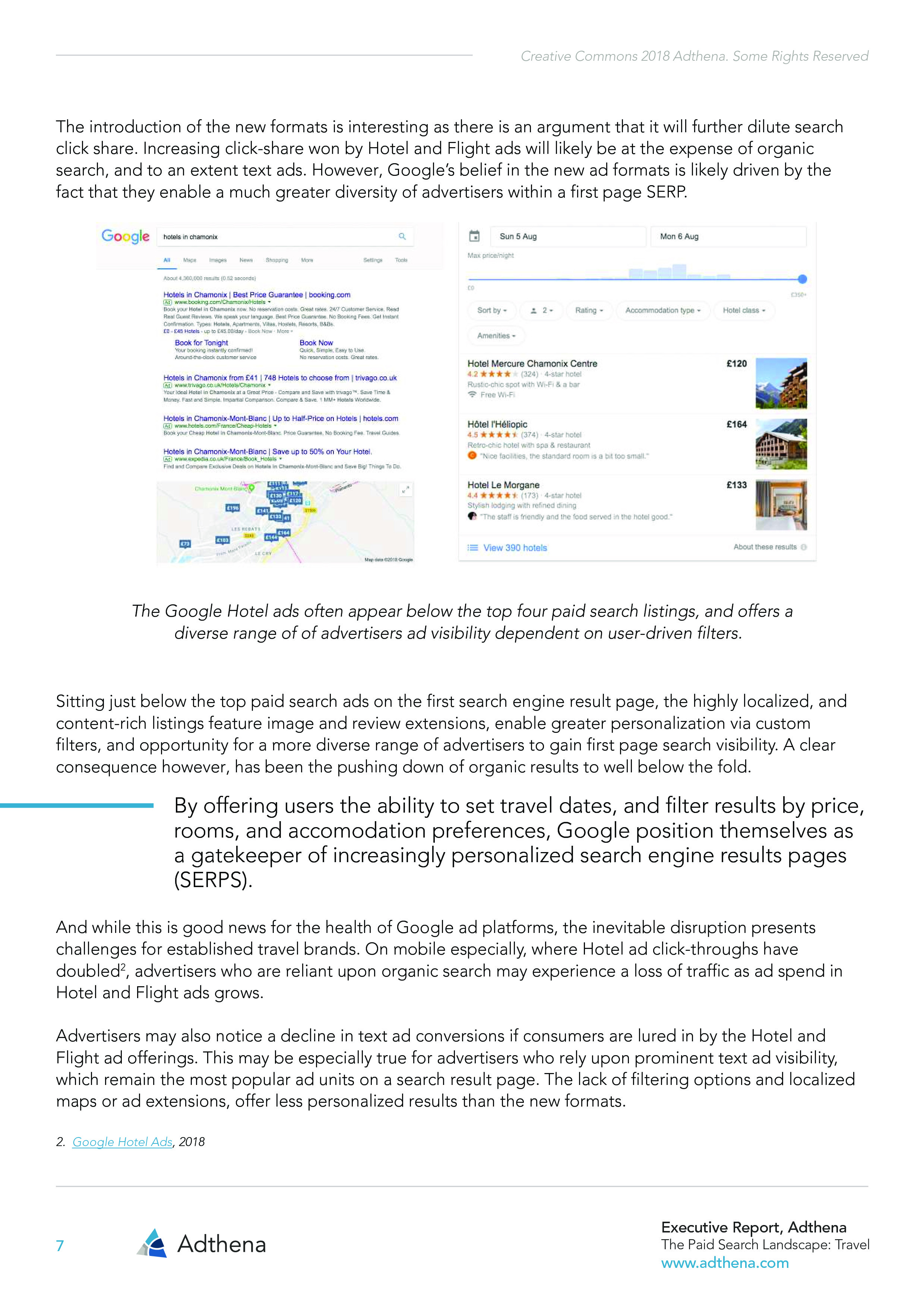 自从谷歌酒店和航班(Google Hotel and Flight)广告单元上线,大大地提高了广告商出现在第一页搜索结果的多样性。在奢侈旅游分支行业,29.84%的宣传关键词与Google Hotel相连。而且,Google Shopping Campaigns吸纳了76.4%的美国旅游搜索广告支出。随着品牌直接投资新颖的广告形式,Hotel and Flight将创造谷歌预计的前景,颠覆Adwords。