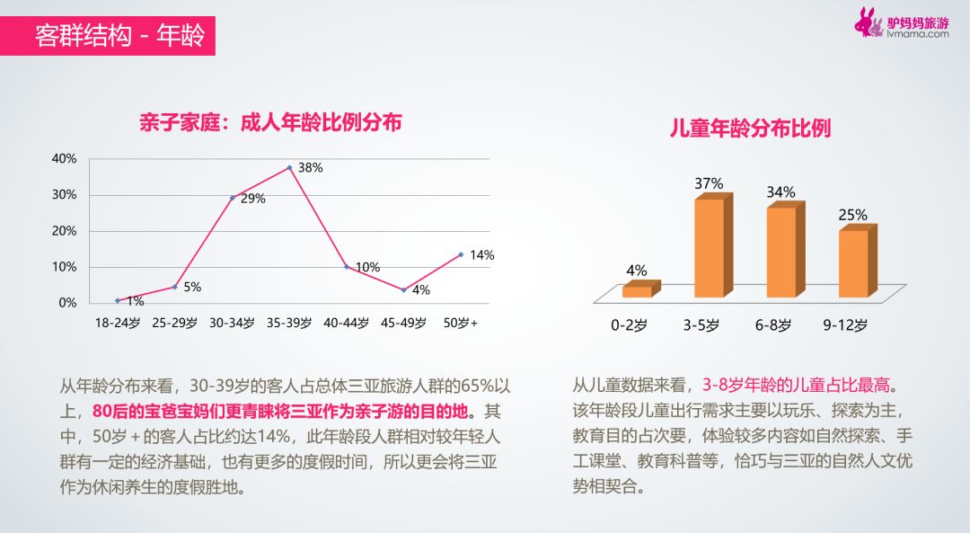 从消费人群画像来看,《白皮书》显示,下单人群中潮妈一族占比较高,约为55%。事关孩子生活、出游方面,妈妈们往往表现出更多积极性和耐心。在出游成人中,80后90后继续占主体同时,50岁以上客人增长较快,占比约达14%,不少家庭选择三代同堂出游或祖孙出游。儿童玩乐、青年休闲、长辈养生,三亚亲子游也被寄予更多目的。