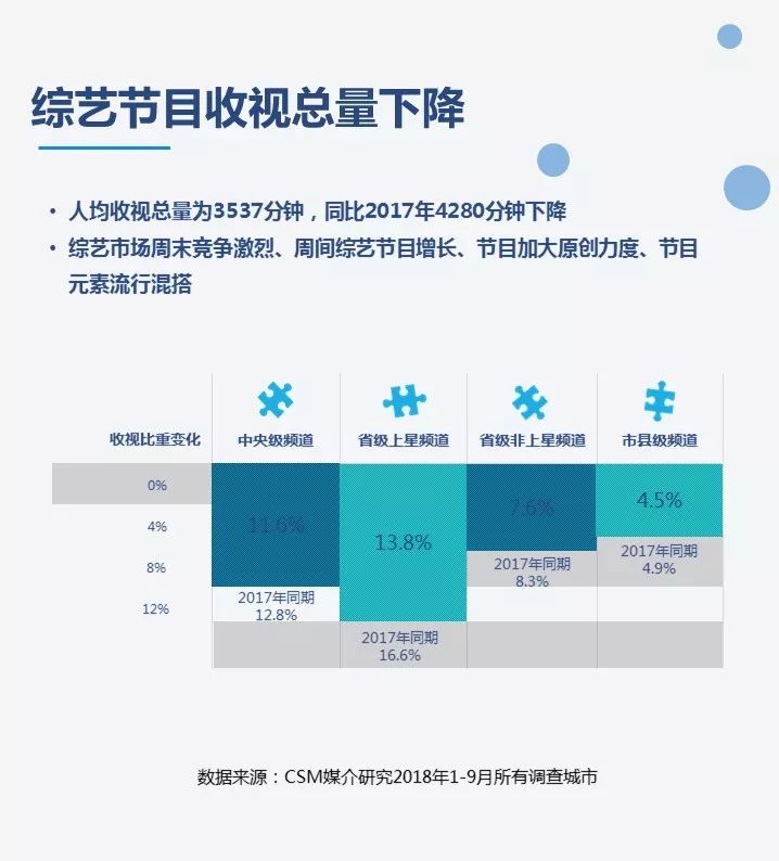 CTR:2018年前三季度全国电视收视市场格局 近日,CSM媒介研究权威发布了2018年前三季度全国电视收视市场格局,分享了全国电视市场收视概况及竞争格局和主要节目收视表现。电视在媒体融合浪潮中的收视变化和特征。 报告来源:收视中国 更多阅读:CTR:中小城市青年观众电视收视特征简析CTR:2021年5月电视广告花费同比增长12.5%尼尔森网联:2019年电视收视市场年中回顾CTR:2018上半年中国广告市场回顾CTR:三大报告全景洞察2019中国广告市场CTR:2019年2月户外投放盘点CTR:2018年10月广告市场榜单Monetate:iPad将改变电子商务市场格局CTR:小鹏汽车助推乘用车电梯海报广告投放增长CTR:2019年8月乘用车全媒体广告投放同比增长呈现今年新低CTR:2019年4月乘用车在电梯电视和影院视频的广告投放增长抢眼CTR:2019年3月乘用车全媒体广告投放同比重现负增长CTR:2019年2月乘用车在户外生活圈媒体广告投放同比增长迅猛CTR:2019年乘用车全媒体广告投放以负增长9%开局CTR:2018年9月广播广告排行榜