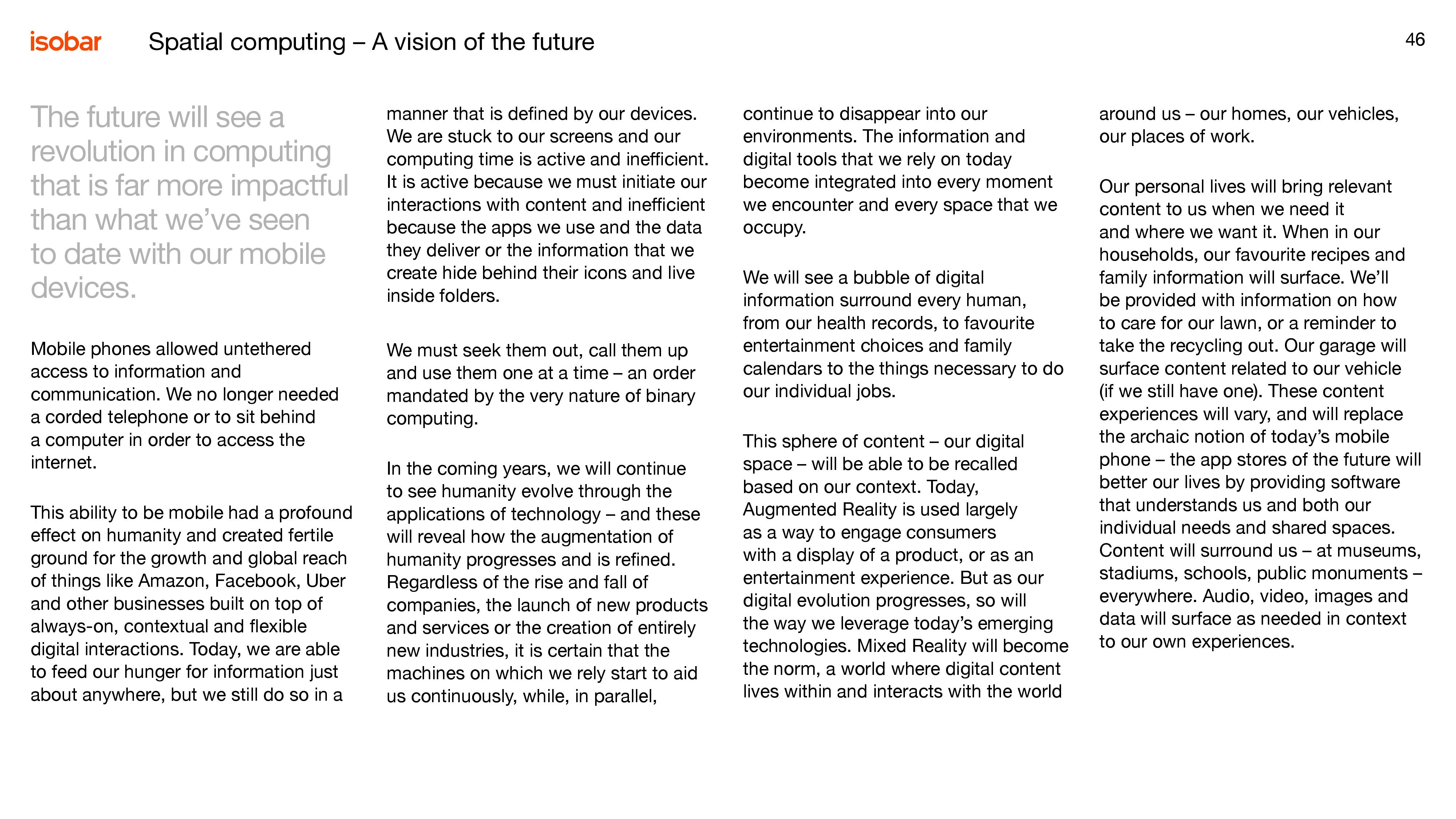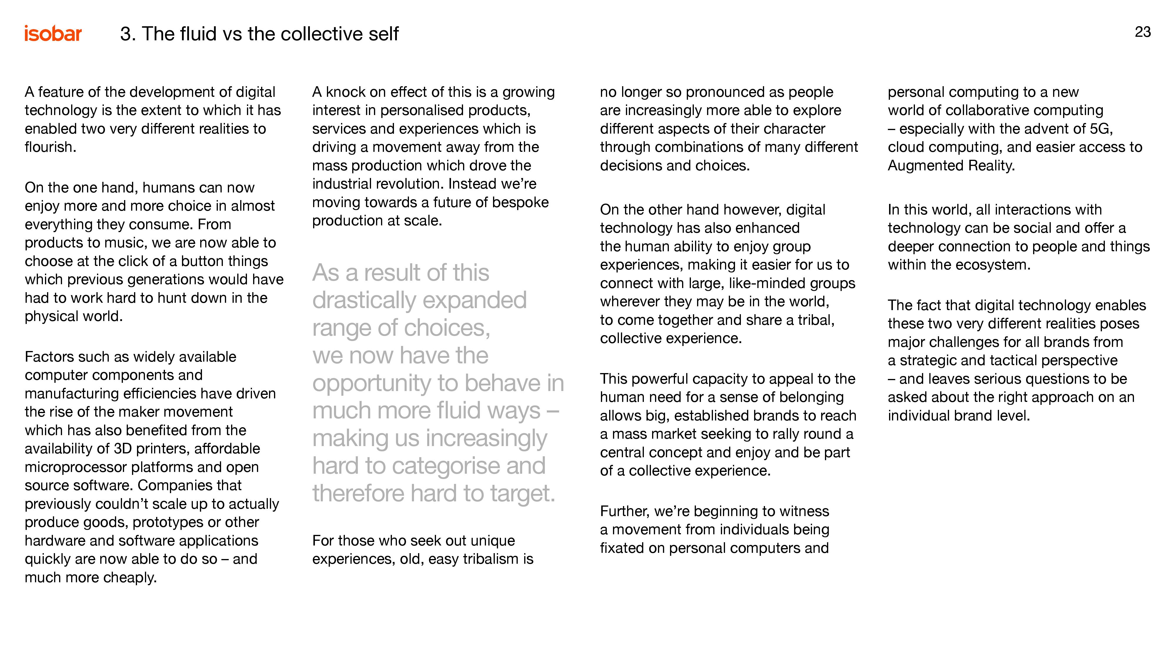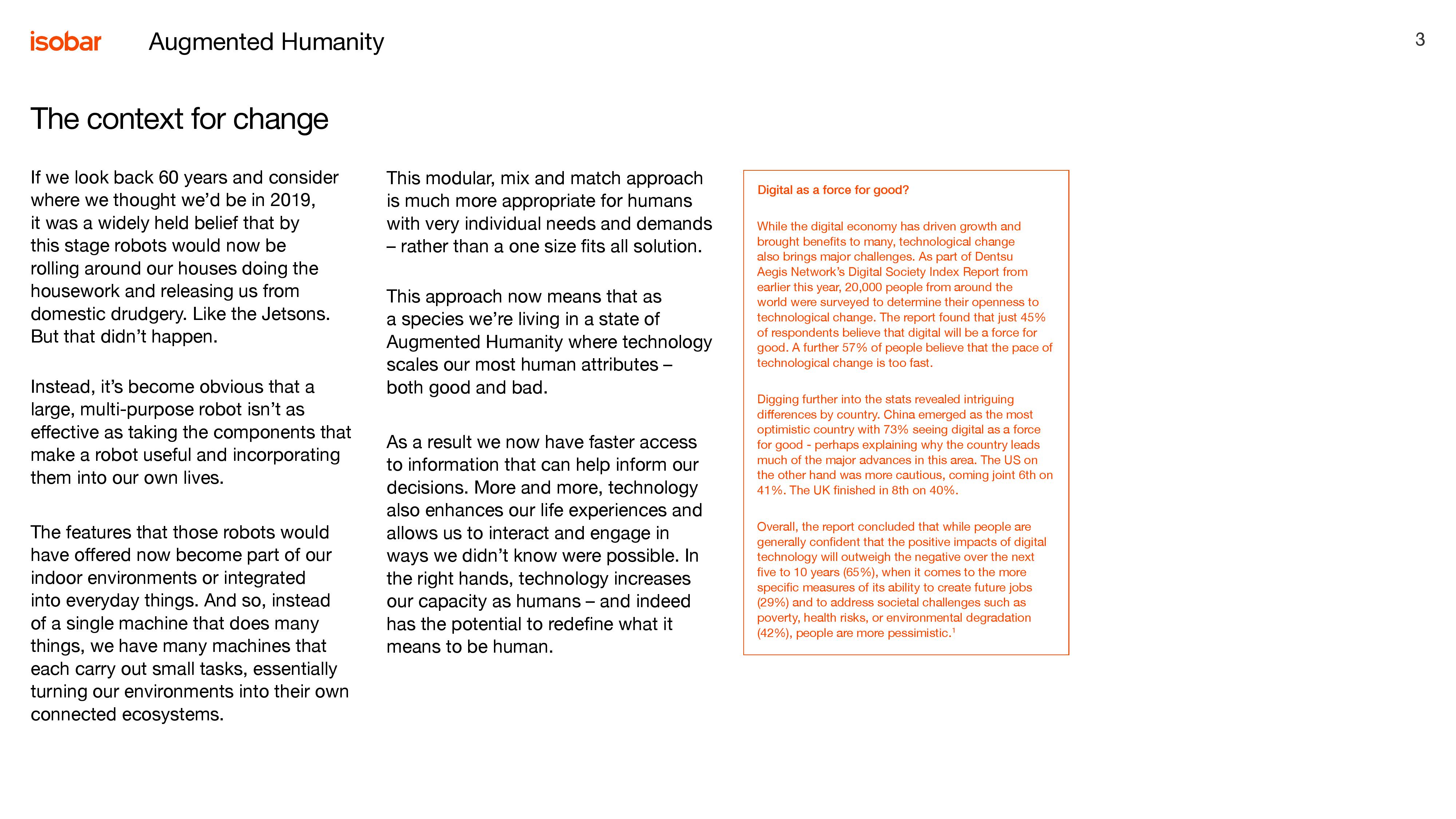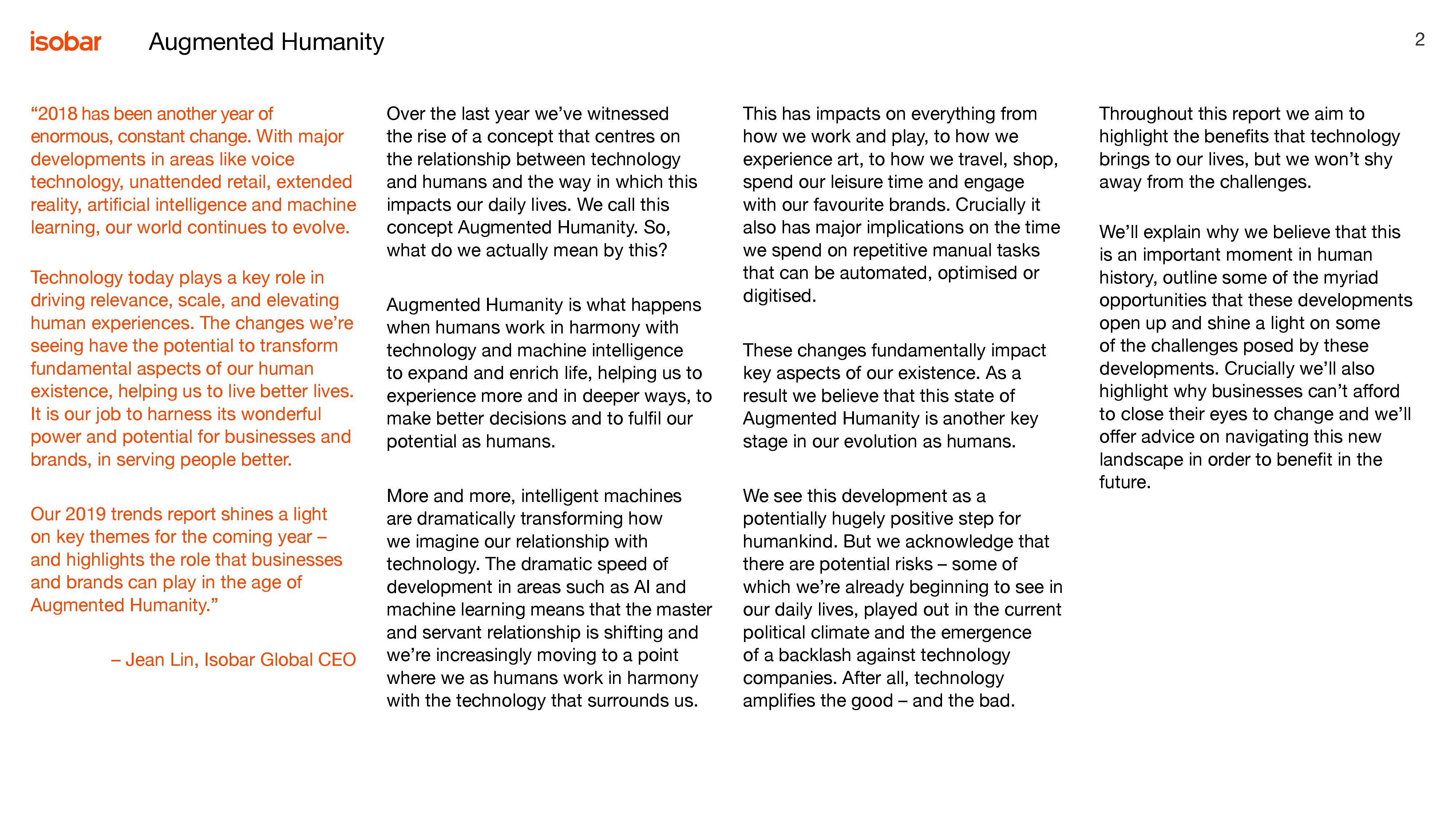 安索帕:2019趋势报告–增强人性 安索帕于2018年提出了“增强人性”概念并发布了首次趋势报告。今年的报告继续建立在这一概念基础上,由来自安索帕45个市场的85个办公室的创新与策略专家参与撰写。 报告从多个方面探讨了人类与科技的关系如何演变,从我们如何工作、娱乐,到怎样旅行、购物、利用闲暇,以及怎样与品牌互动。该年度报告旨在帮助企业和品牌探索数字新领域,帮助他们在2019年乃至更长时间内领先于时代前沿。 PDF版本将分享到199IT交流群,支持我们发展可加入! 更多阅读:增强人性:2020趋势报告世界经济论坛报告:工作的未来OECD:在工作场所使用人工智能工作中的AI:亦敌亦友世界经济论坛:2024年全球数字化工作的兴起Razorfish:数字婴儿潮一代报告Feedvisor:2025年返校季策略报告国际劳工组织:2017年全球青年就业趋势报告Statista:女性在高科技行业仍面临着性别不平等NAP:2024年人工智能和未来的工作Gen-AI:人工智能和工作的未来WeWork:2018年经济影响报告KRC Research:2020人工智能与自动化对工作的影响报告在工作上,如何避免坏了友情?YouGov:71%的美国人认为机器人将会威胁就业