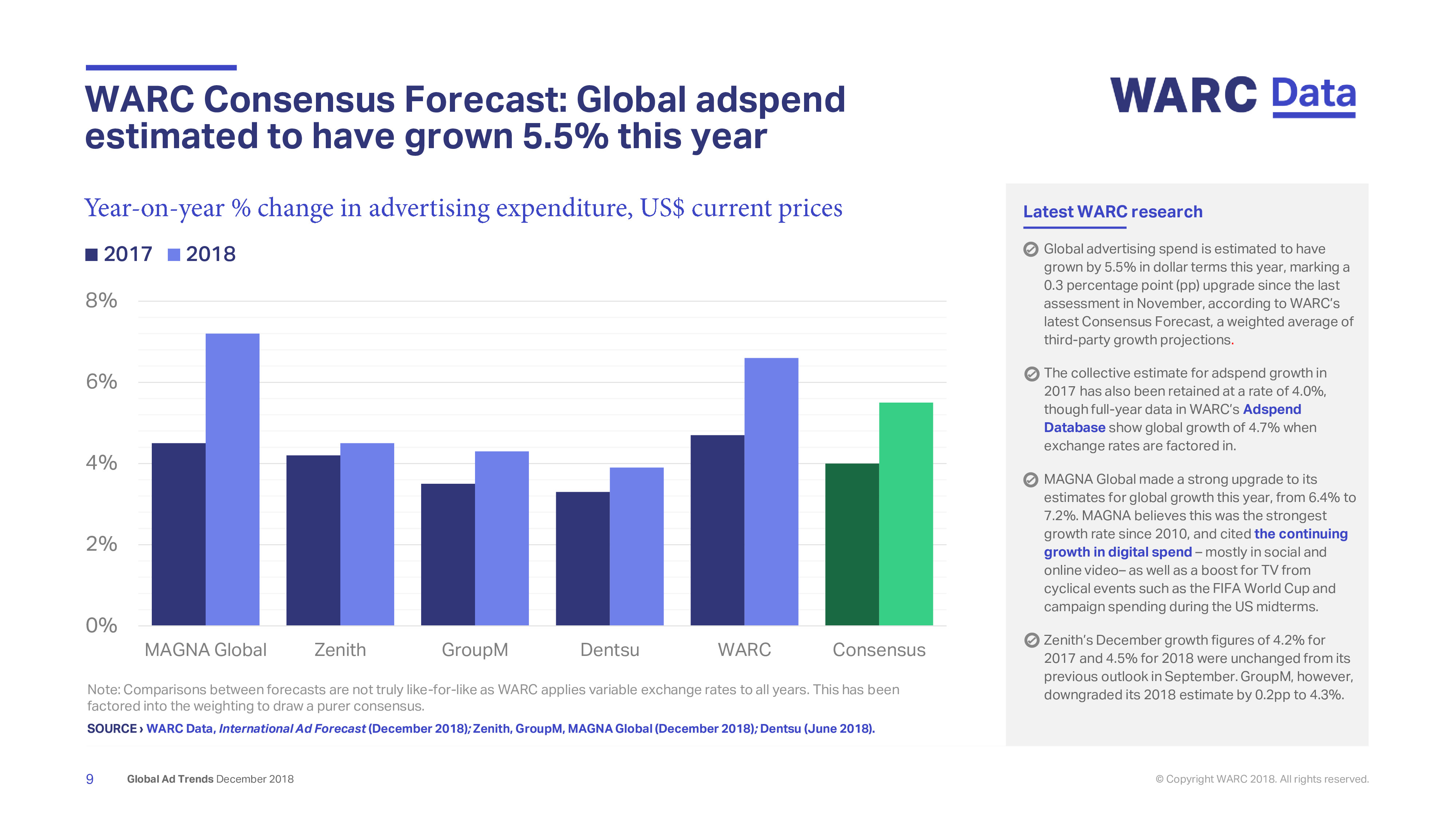 根据WARC的一项新报告“2018年全球广告趋势”,全球观看传统电视的时间可能正在下降,但其影响力仍然无与伦比,而智能和联网电视的普及将为广告商开辟新的机会。