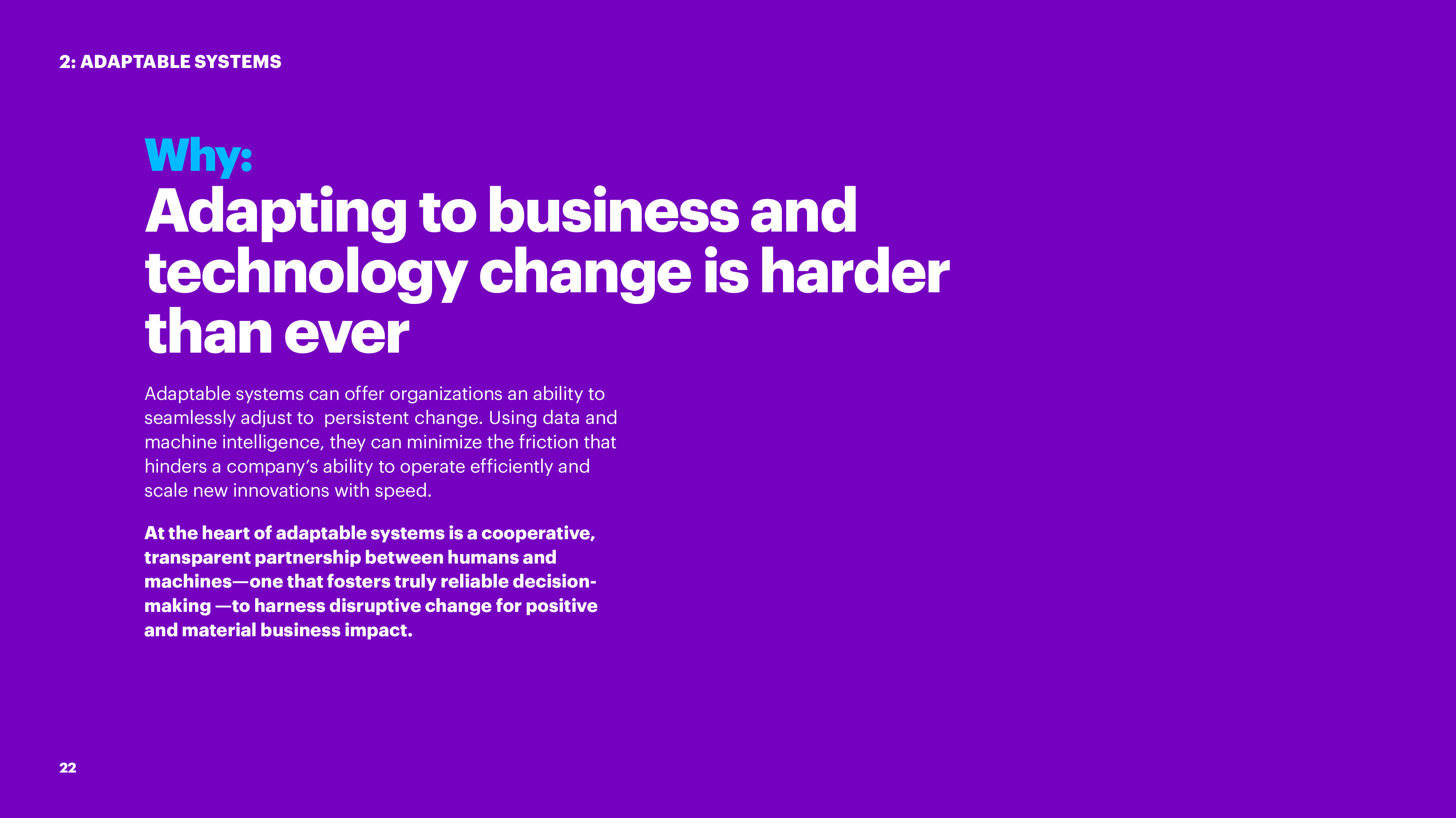 适应性强。适应性强的系统可以最大限度地减少摩擦,阻碍公司快速扩展创新能力。利用数据和机器智能,这些系统可以自行学习、改进和适应,帮助企业在动态变化的需求和环境中蓬勃发展。