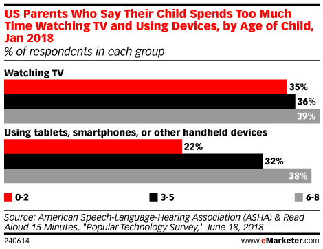 2018年3月,YouGov调查发现许多2岁或更小的孩子的父母感叹他们的孩子花在数字设备及电视上的时间太多。